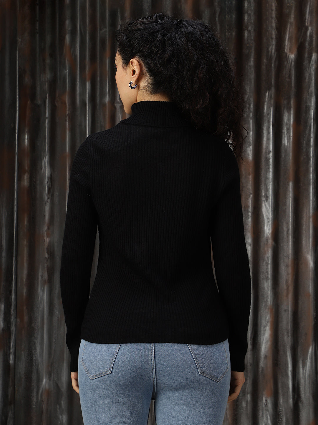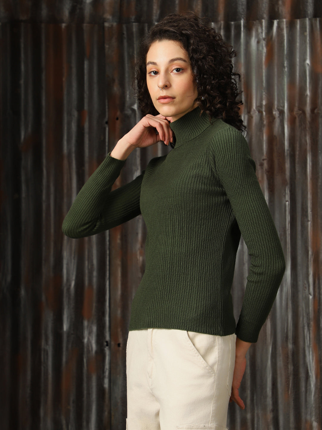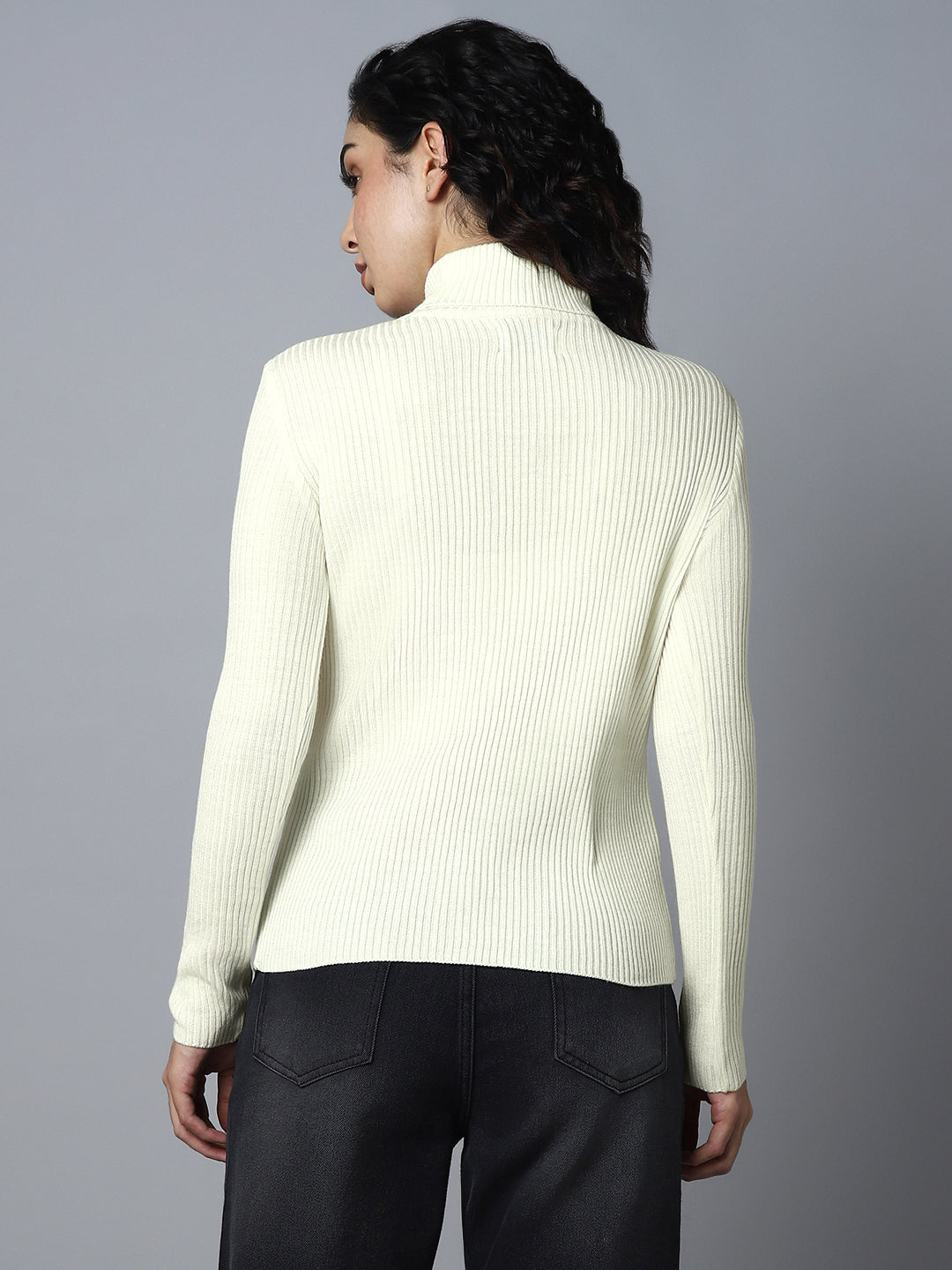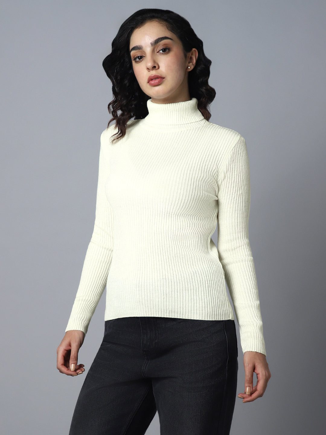 Women Ribbed Turtle Neck Long Sleeves Acrylic Pullover Sweaters