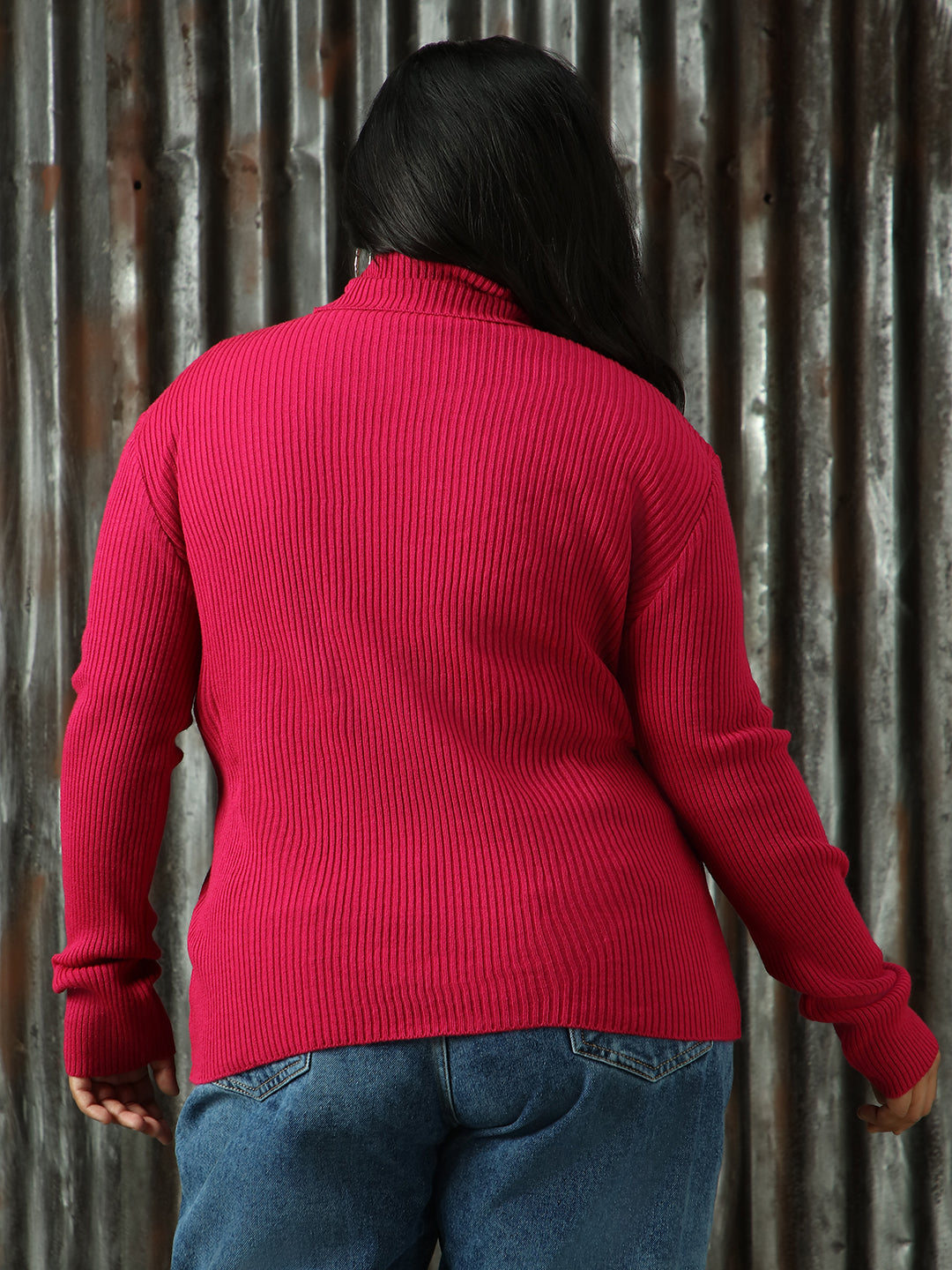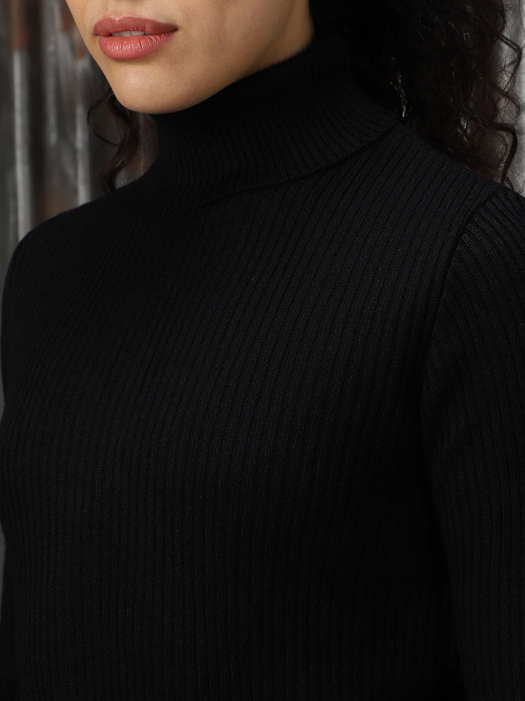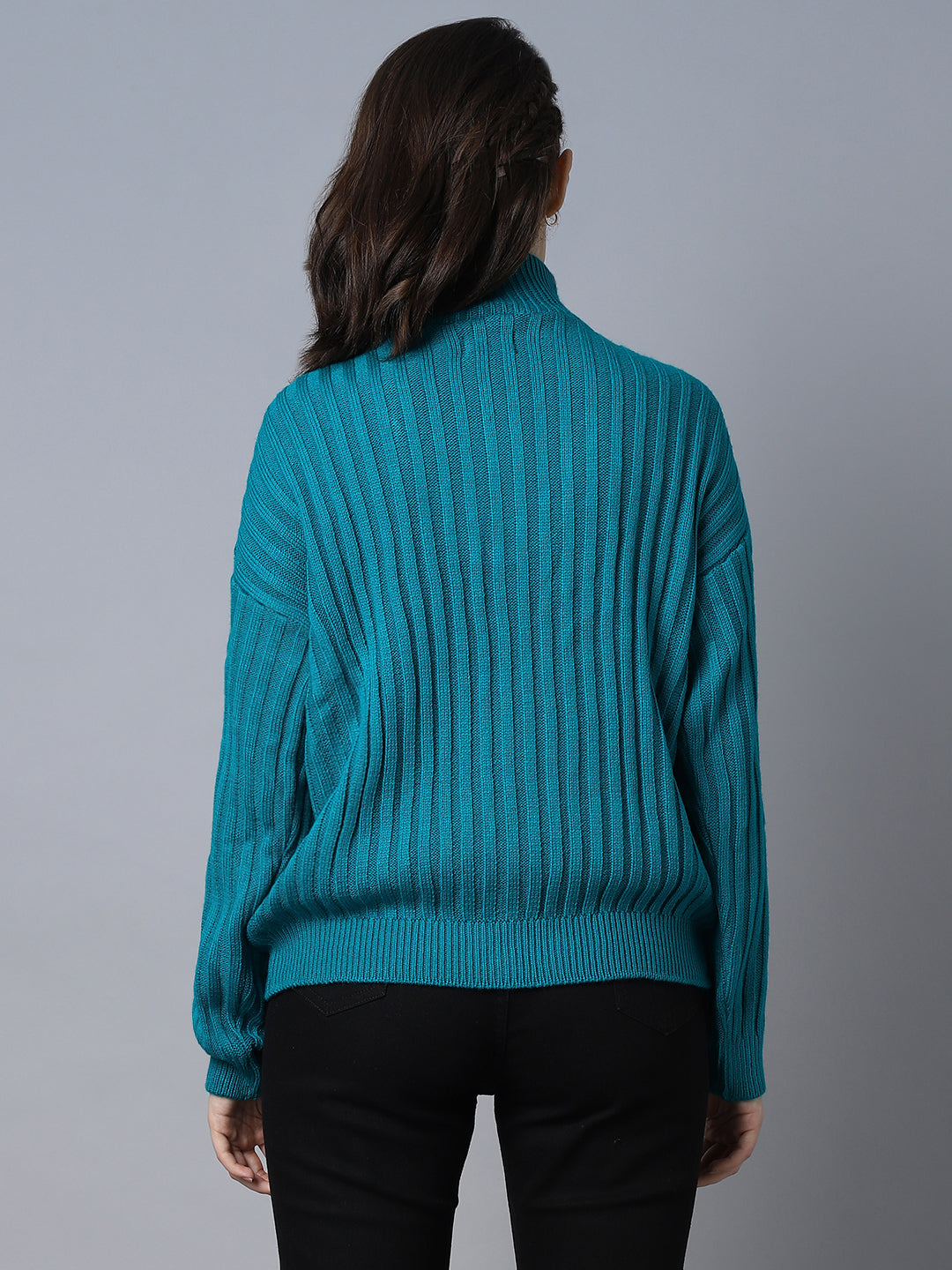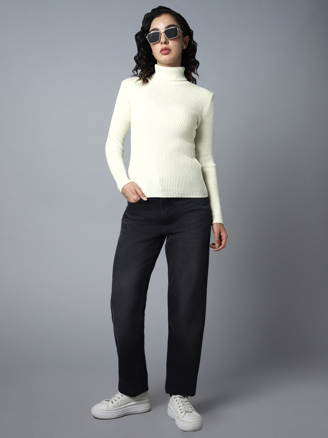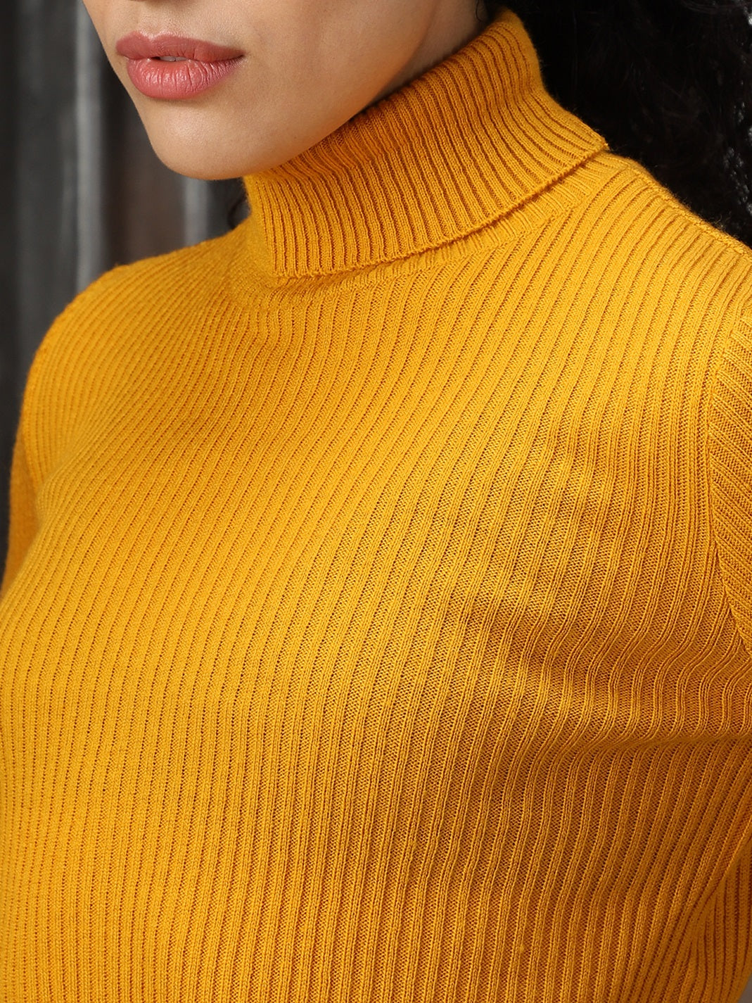 Women Ribbed Turtle Neck Long Sleeves Acrylic Pullover Sweaters