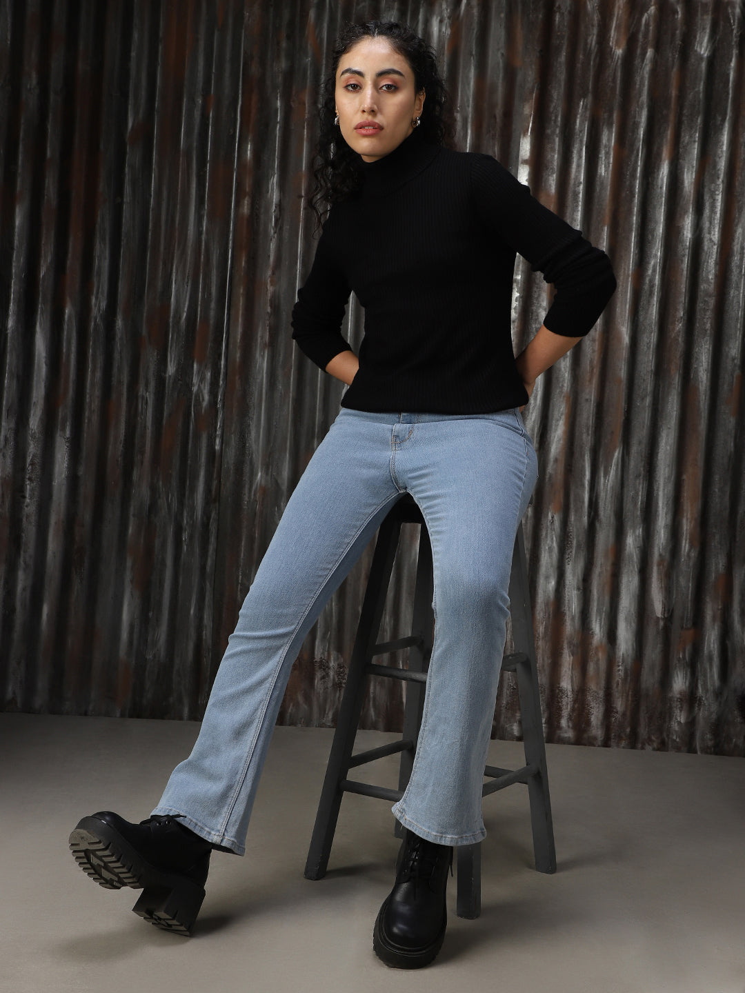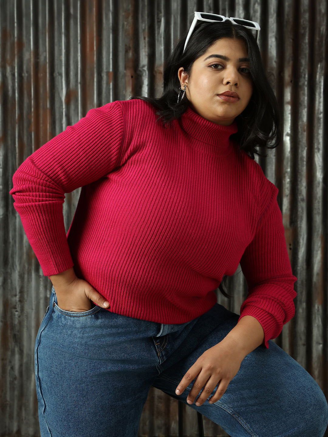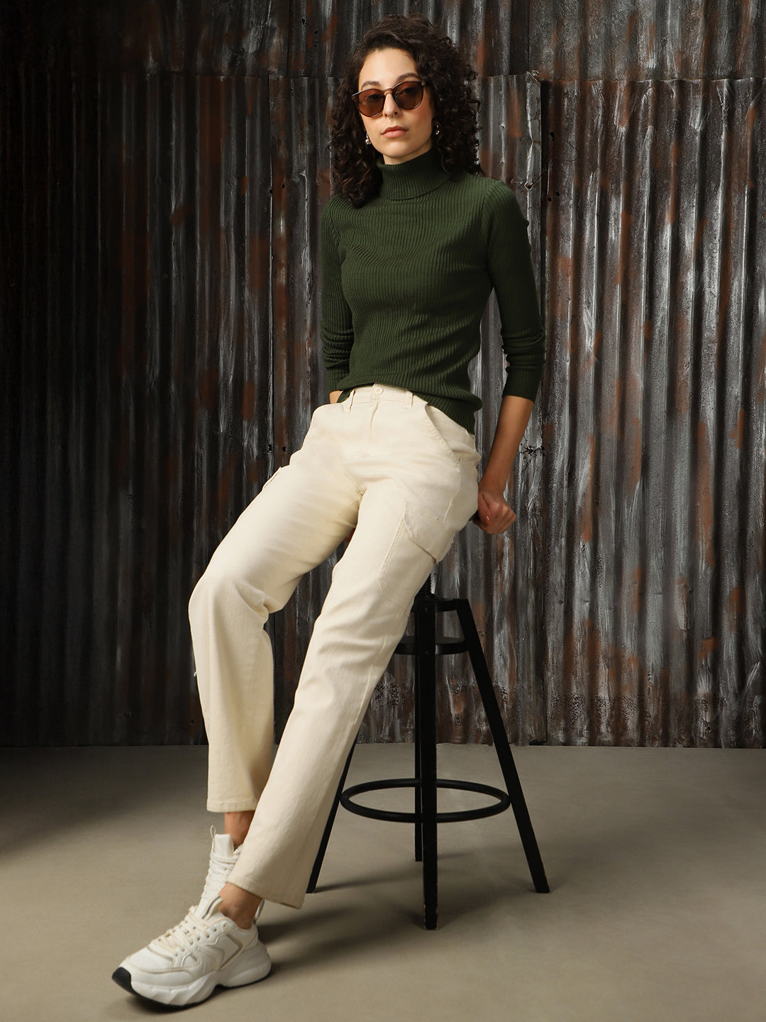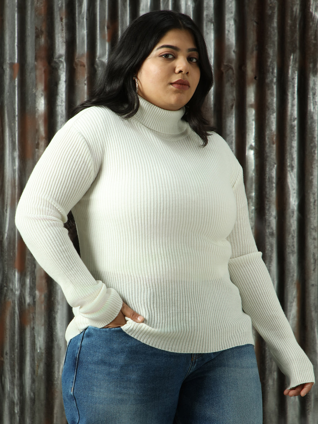 Women Ribbed Turtle Neck Long Sleeves Acrylic Pullover Sweaters