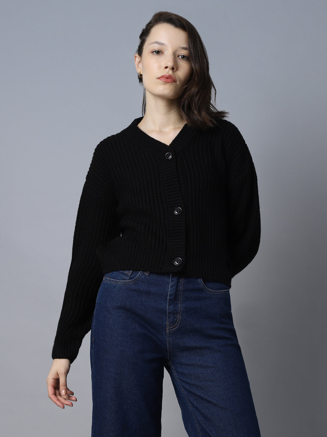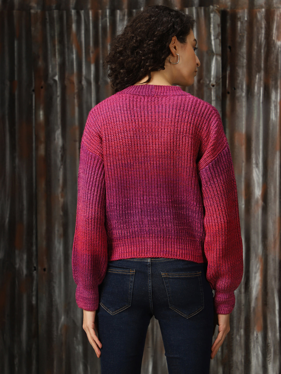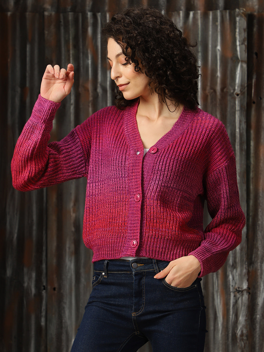 Women Crop Boxy Fit Ombre Yarn Sweater Cardigan