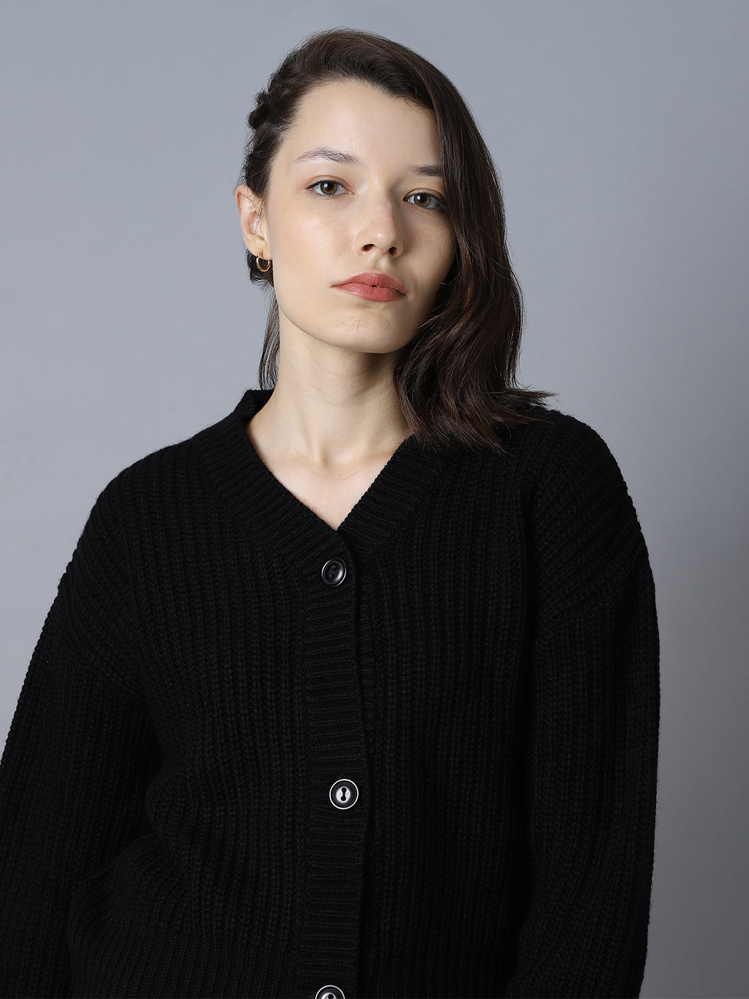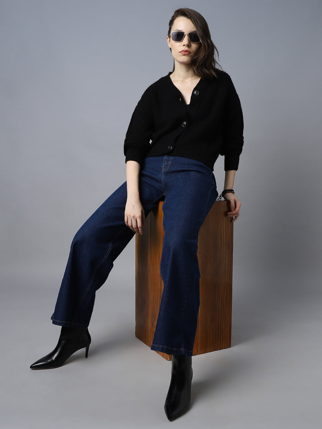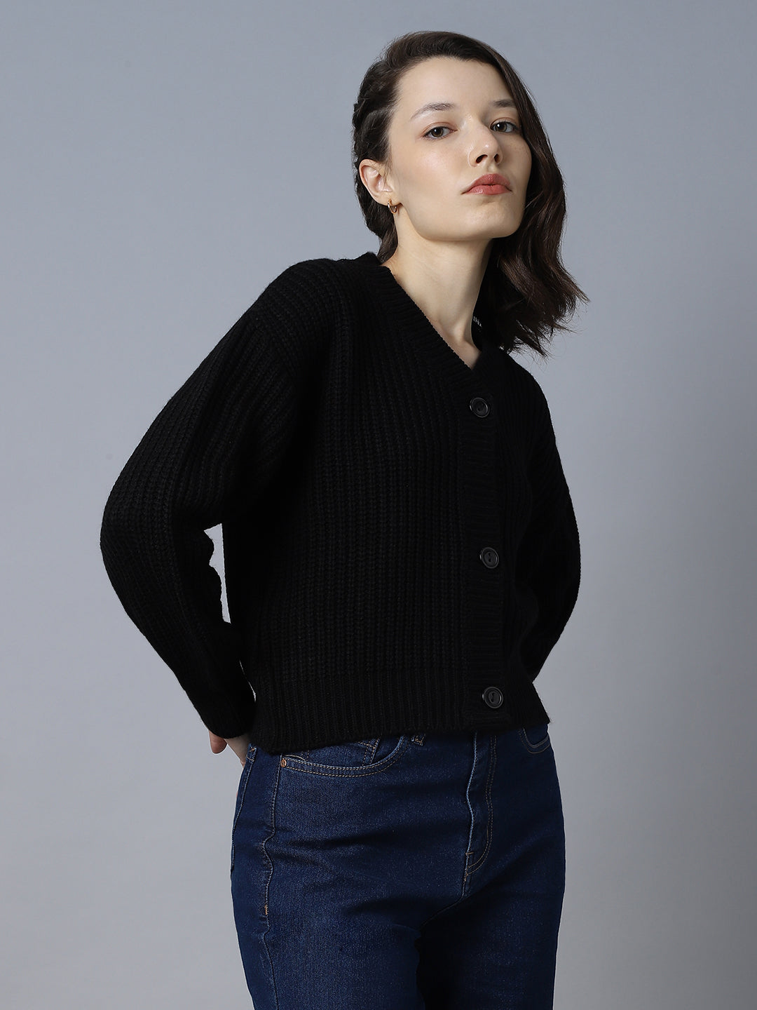 Women Crop Boxy Fit Ombre Yarn Sweater Cardigan