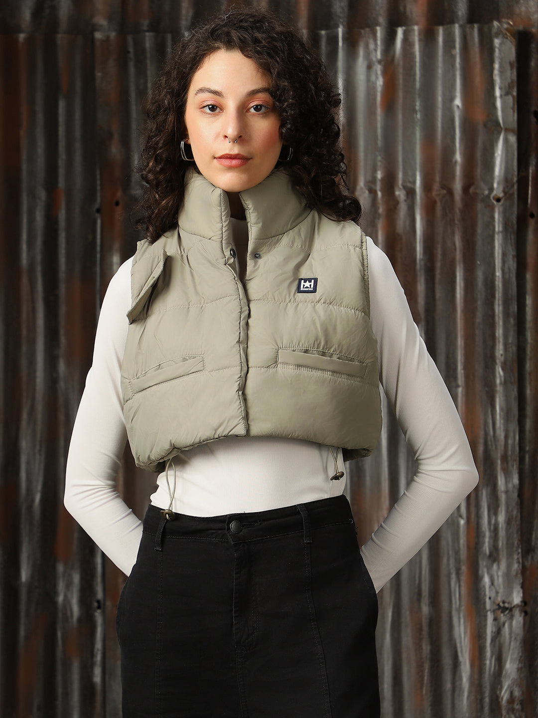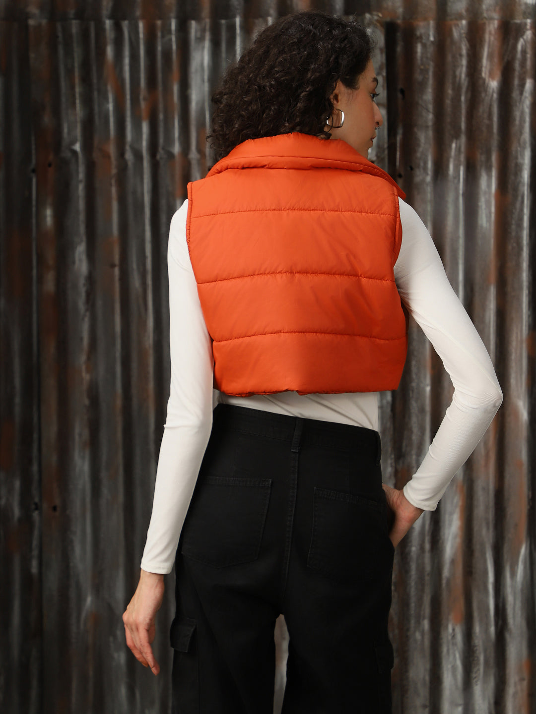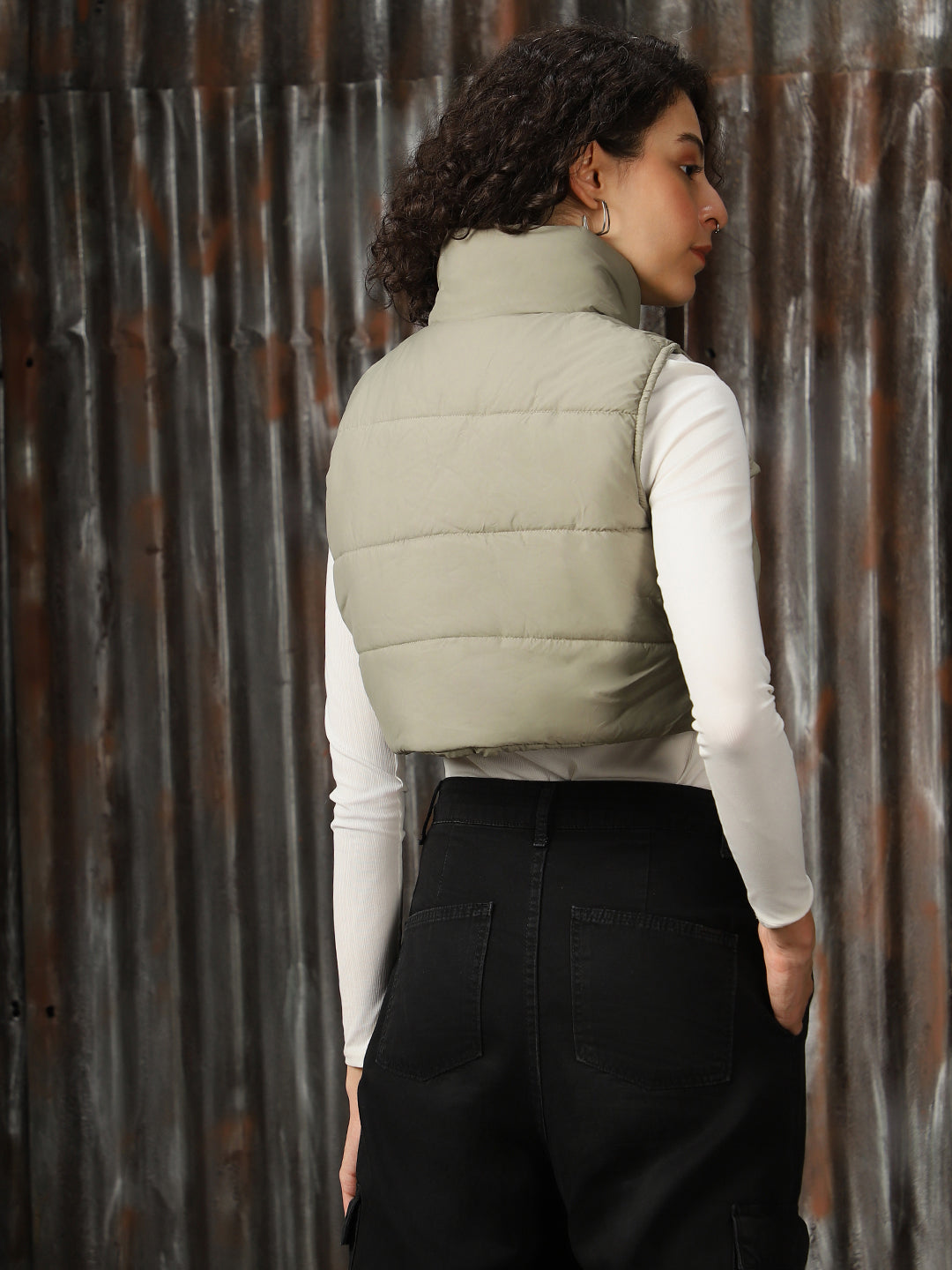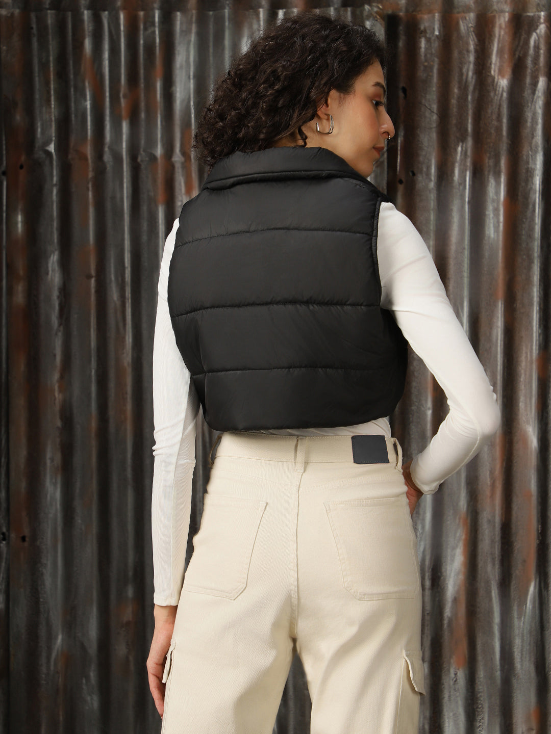 Women Mock Collar Sleeveless Crop Padded Jacket