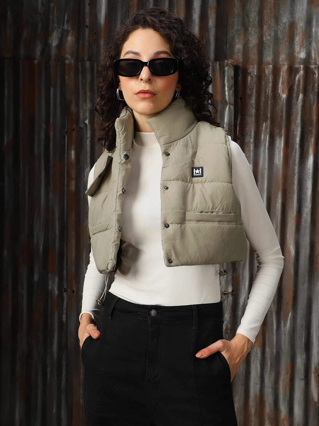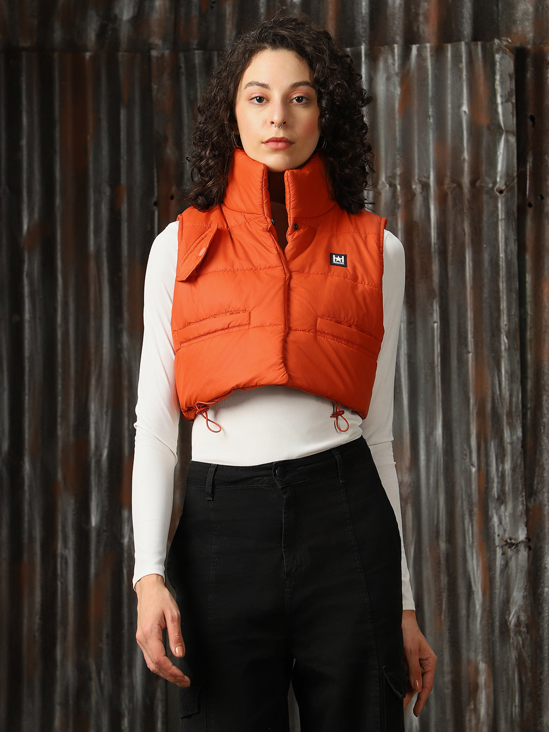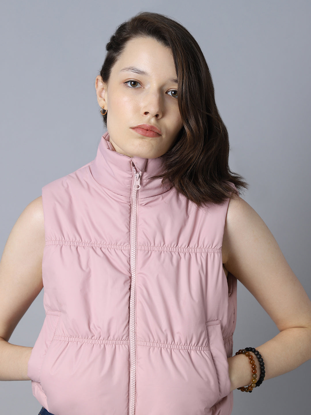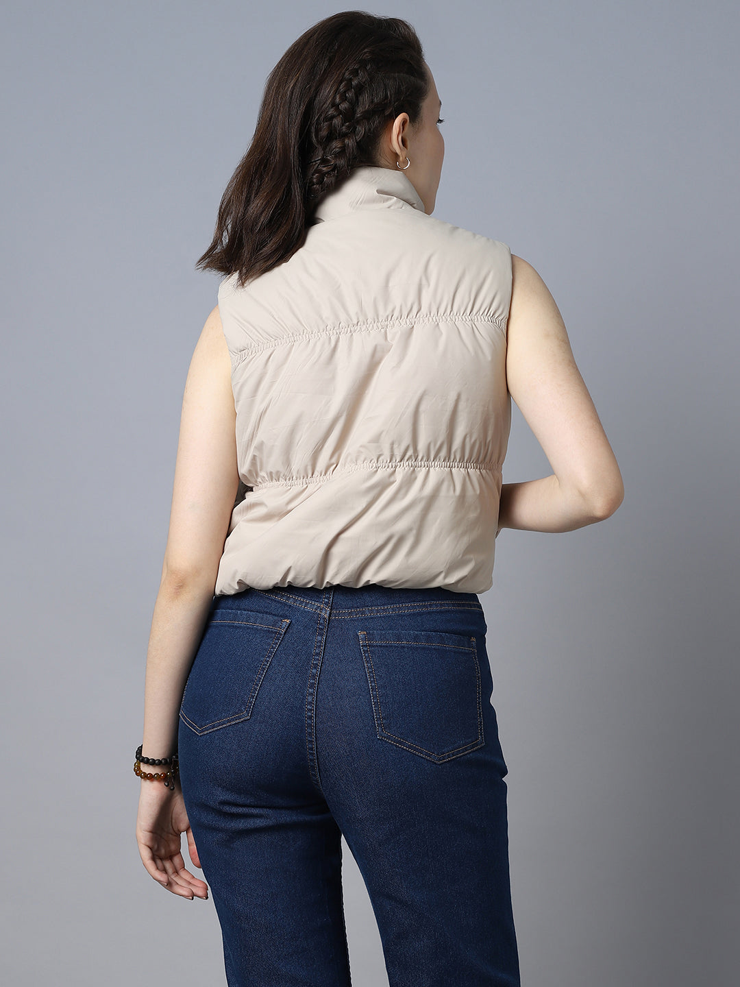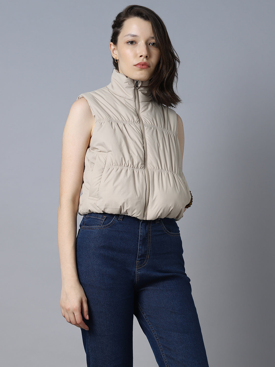 Women Mock Collar Sleeveless Crop Padded Jacket