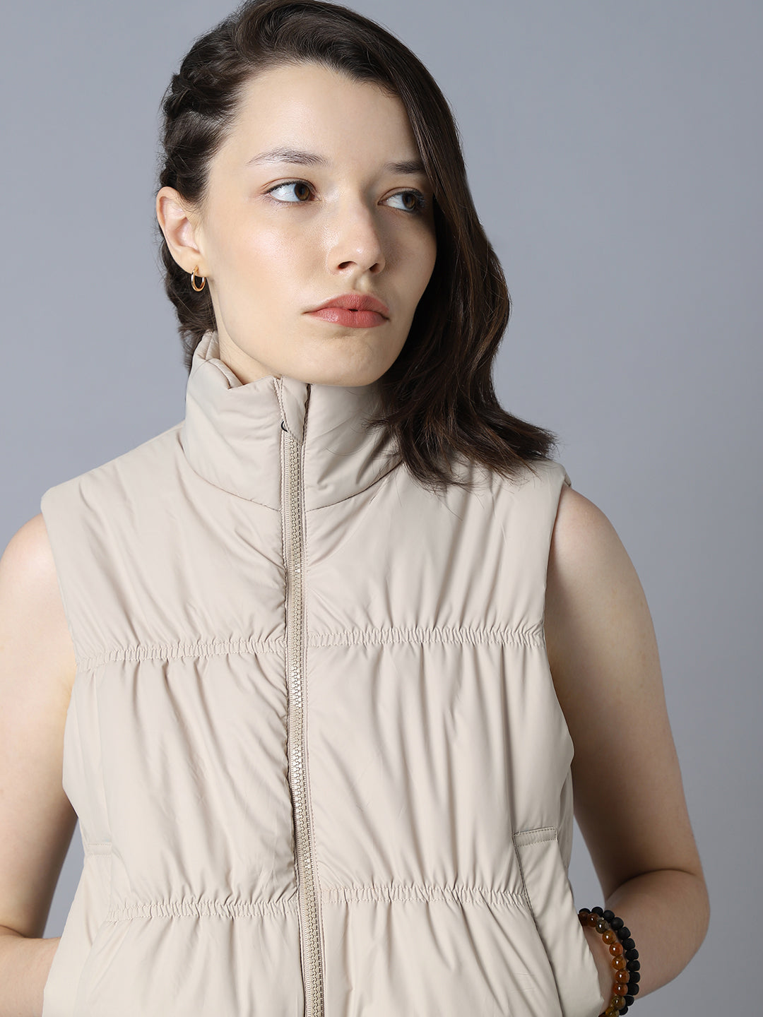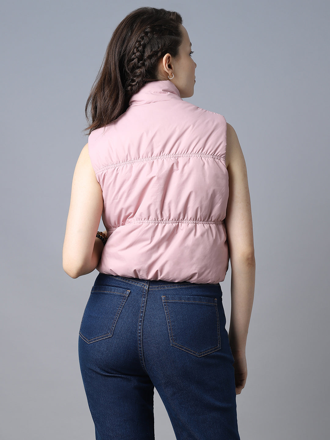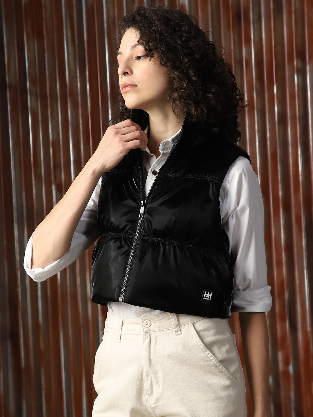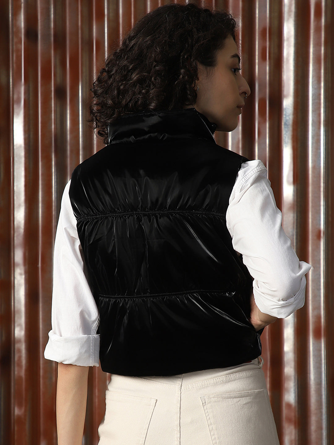 Women Mock Collar Sleeveless Crop Padded Jacket