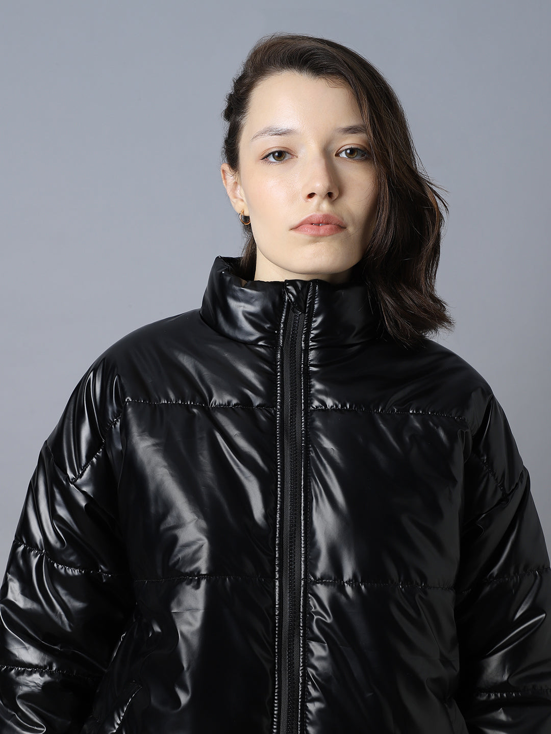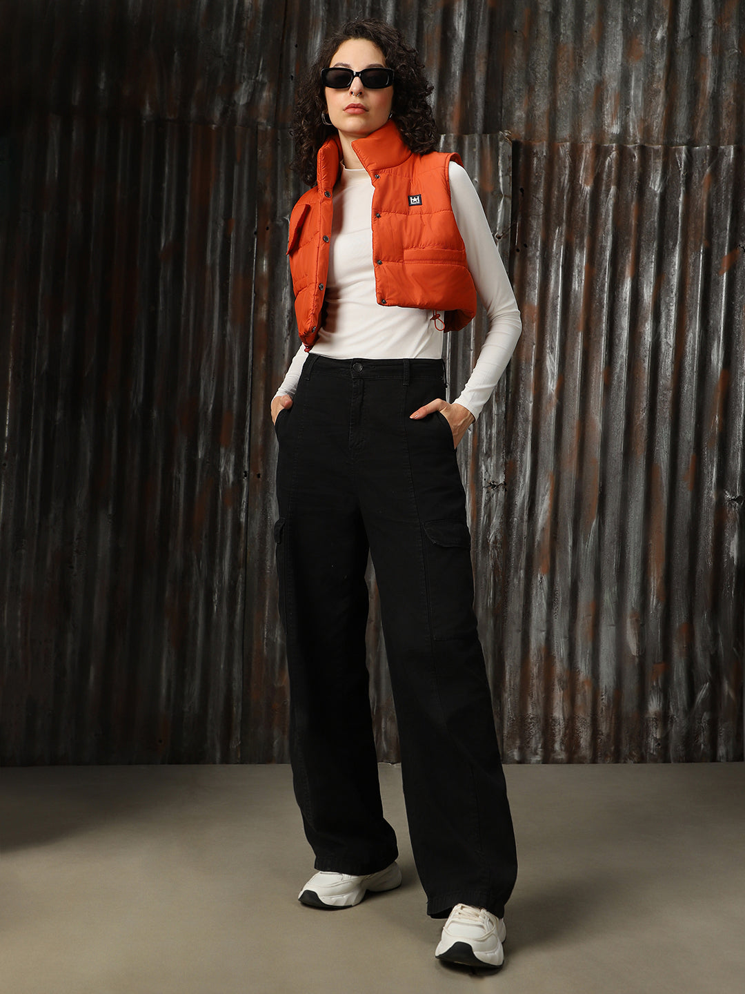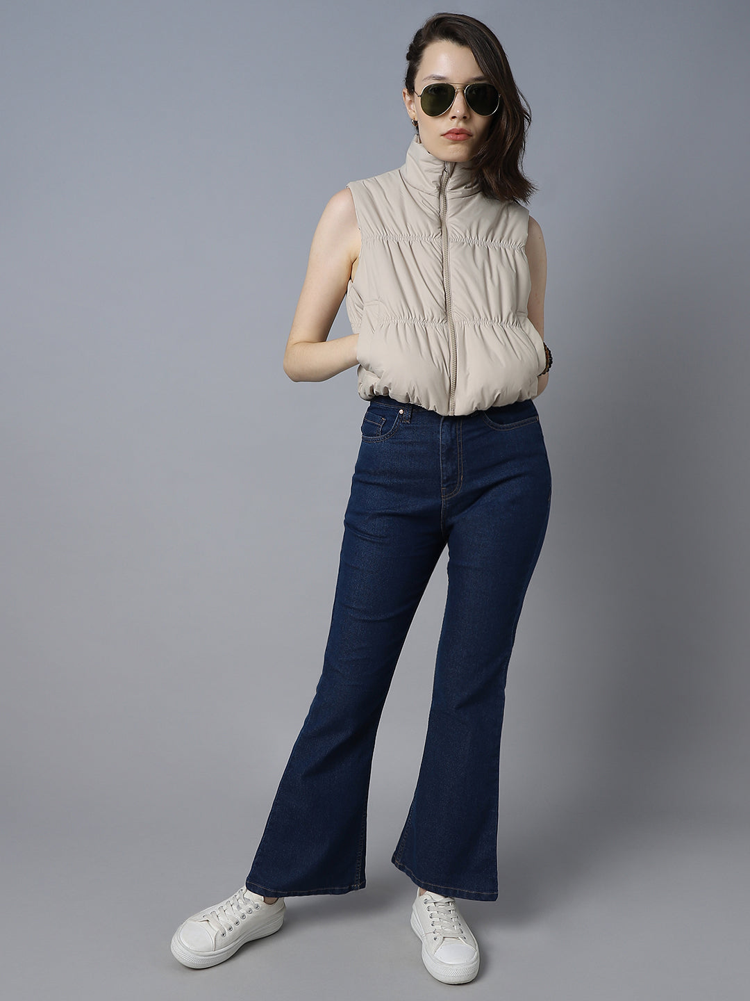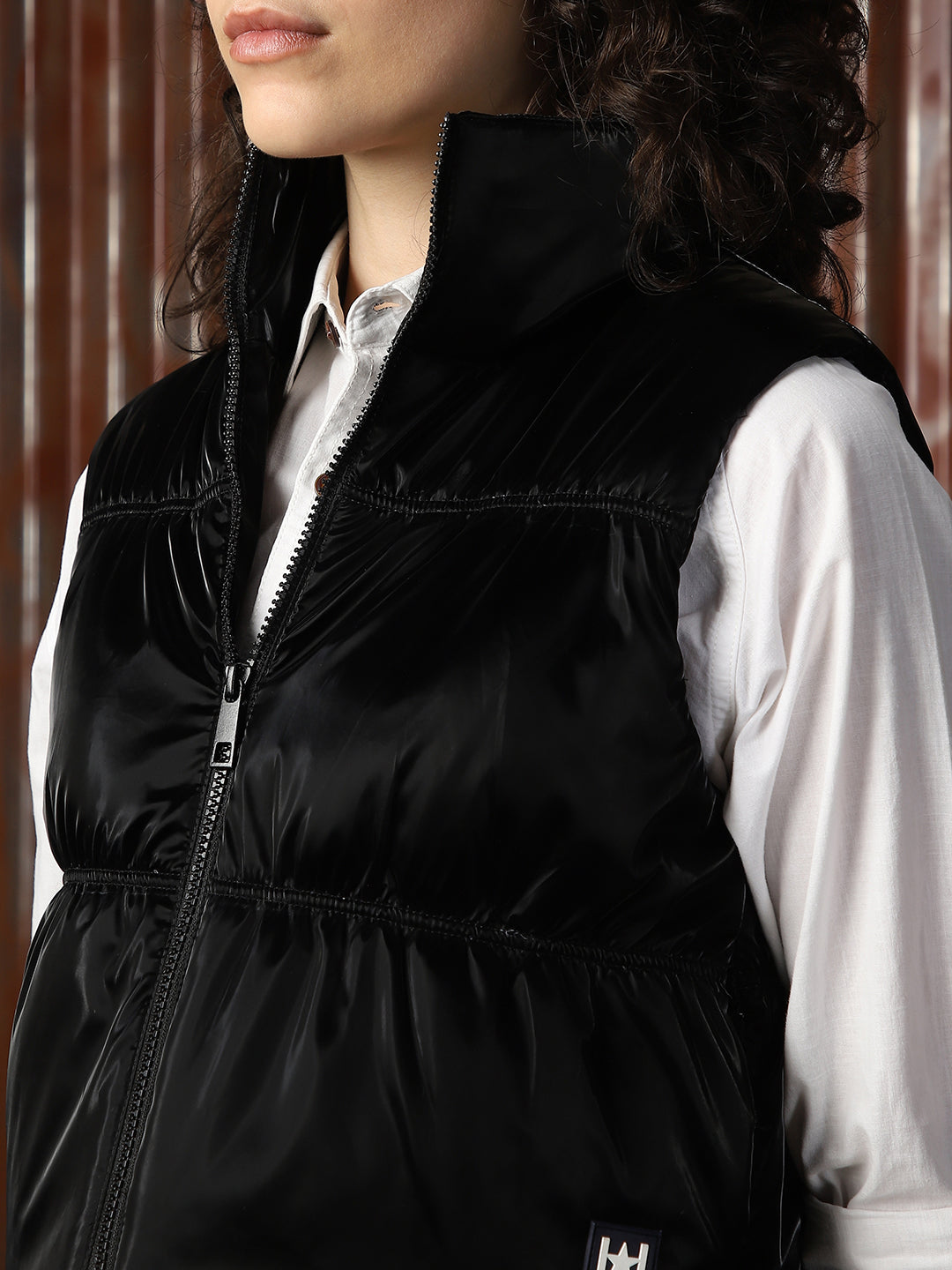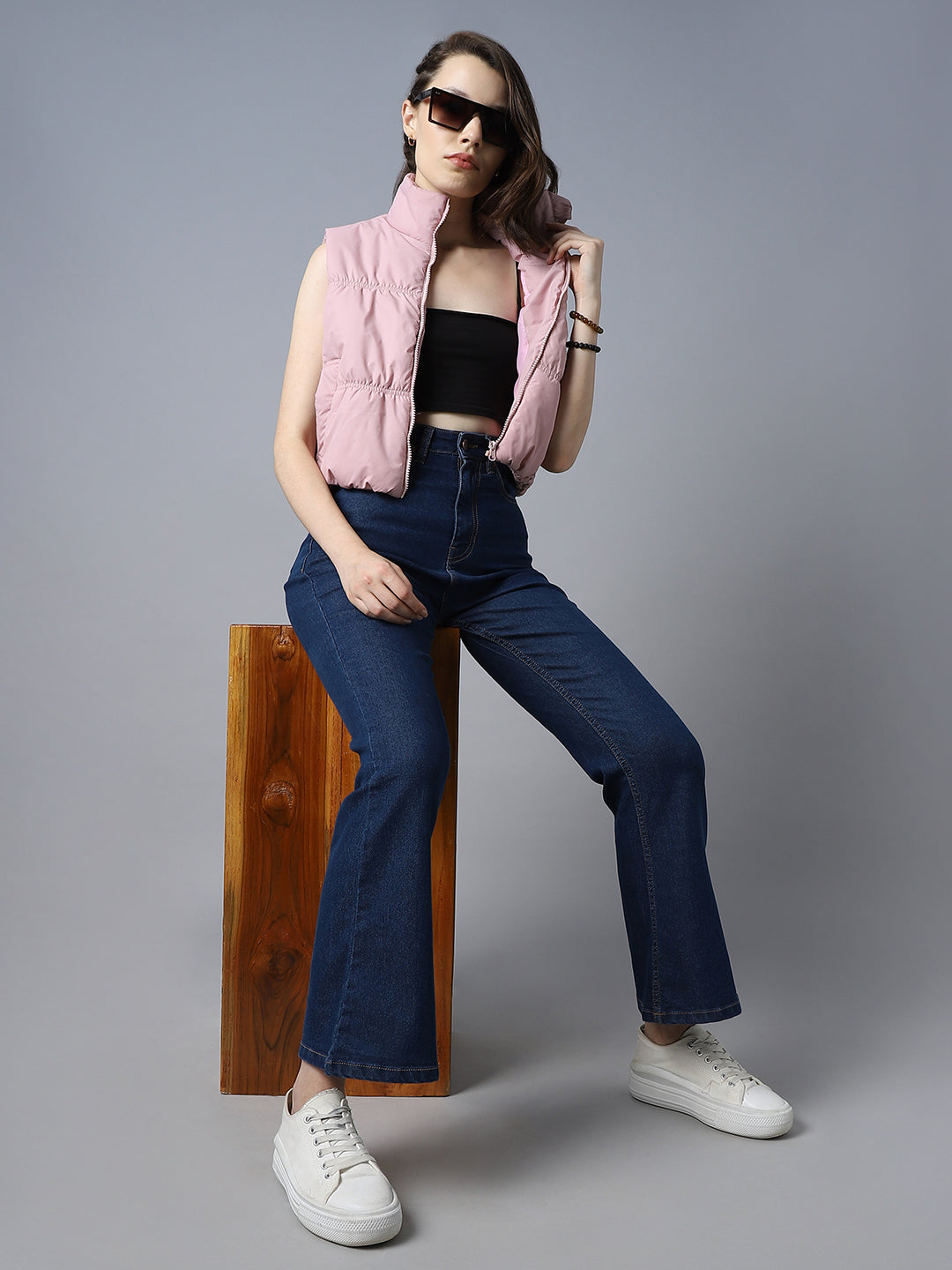 Women Mock Collar Sleeveless Crop Padded Jacket