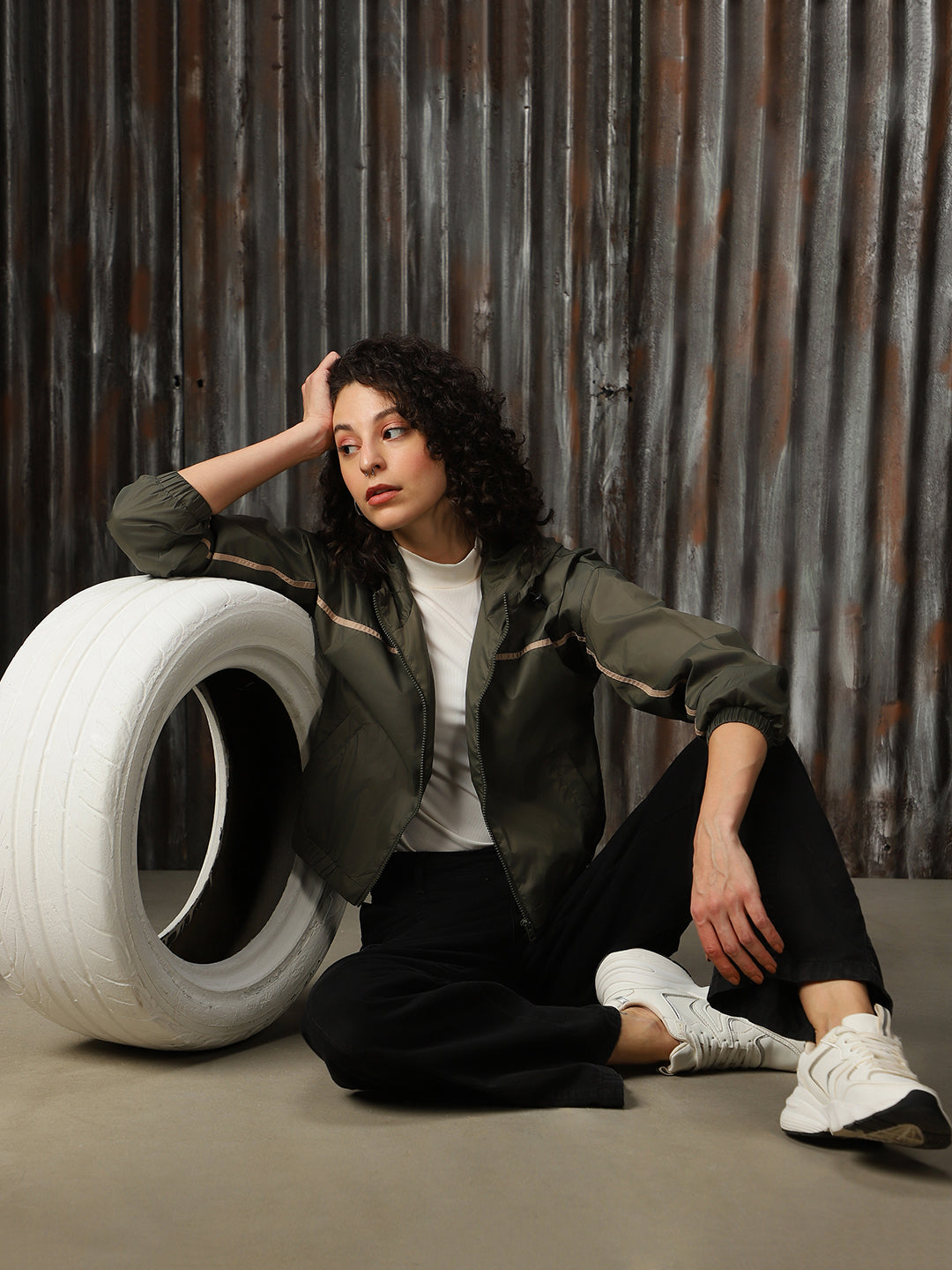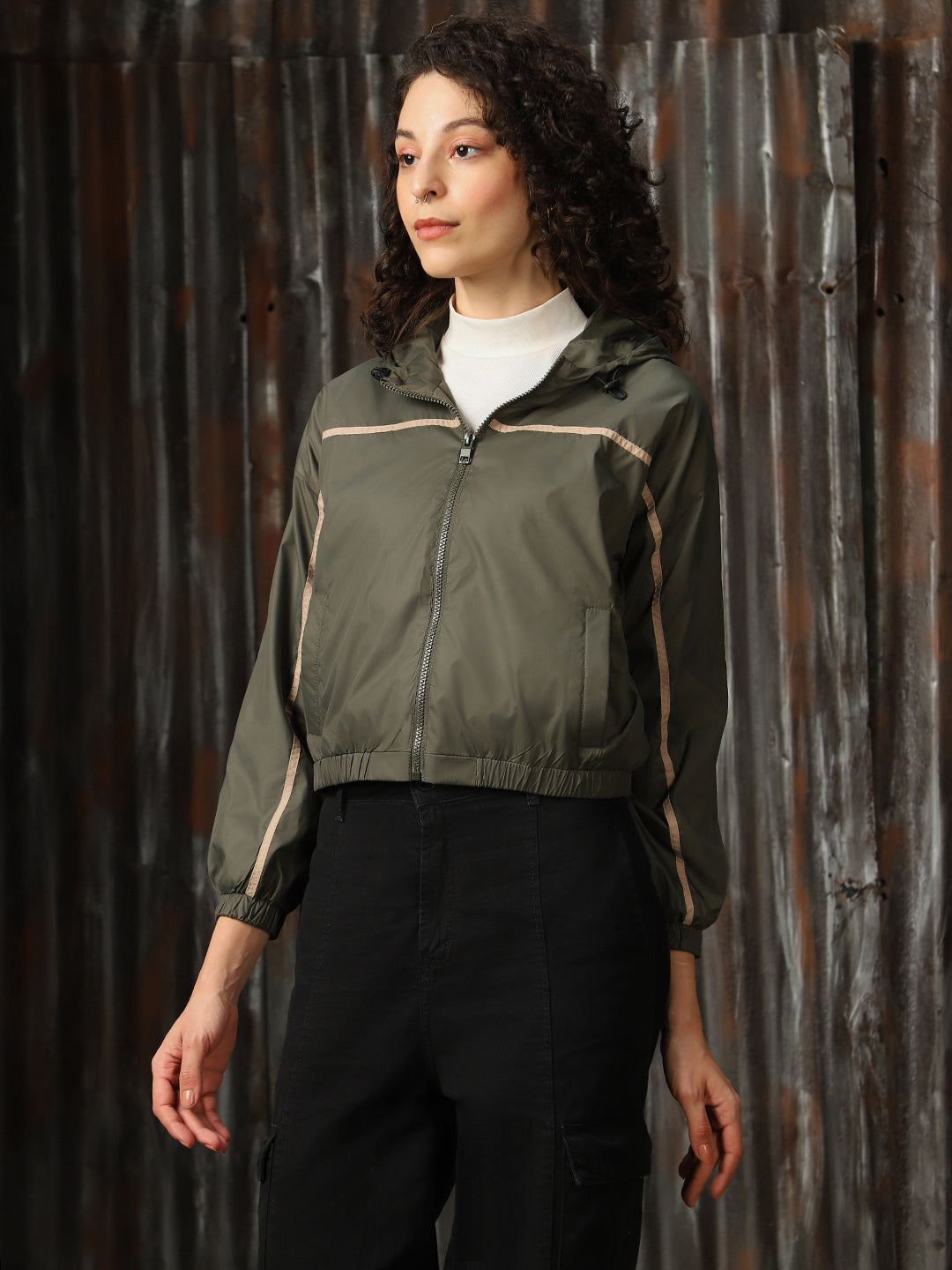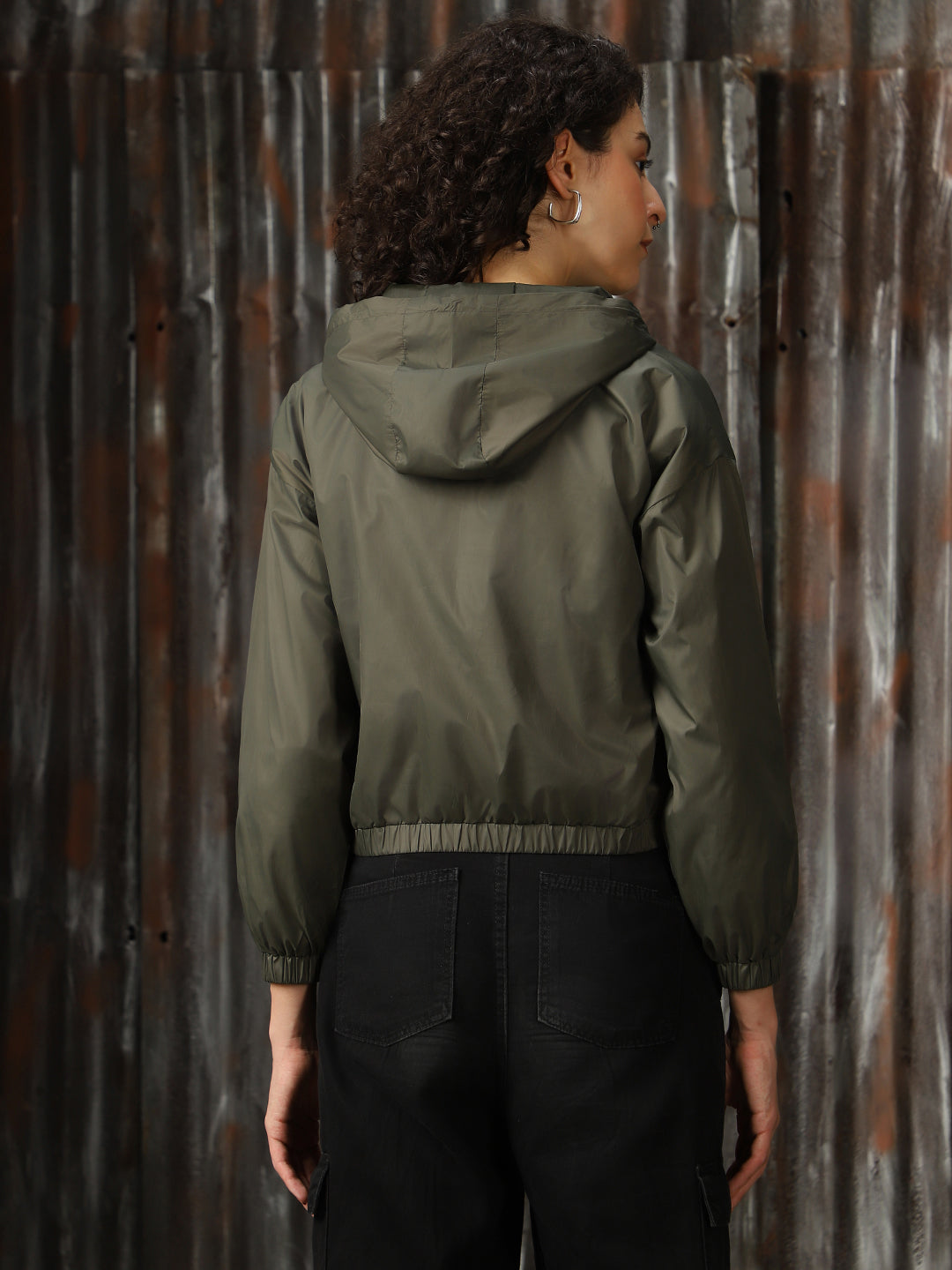Women Hooded Neck Long Sleeve Open Front Jacket