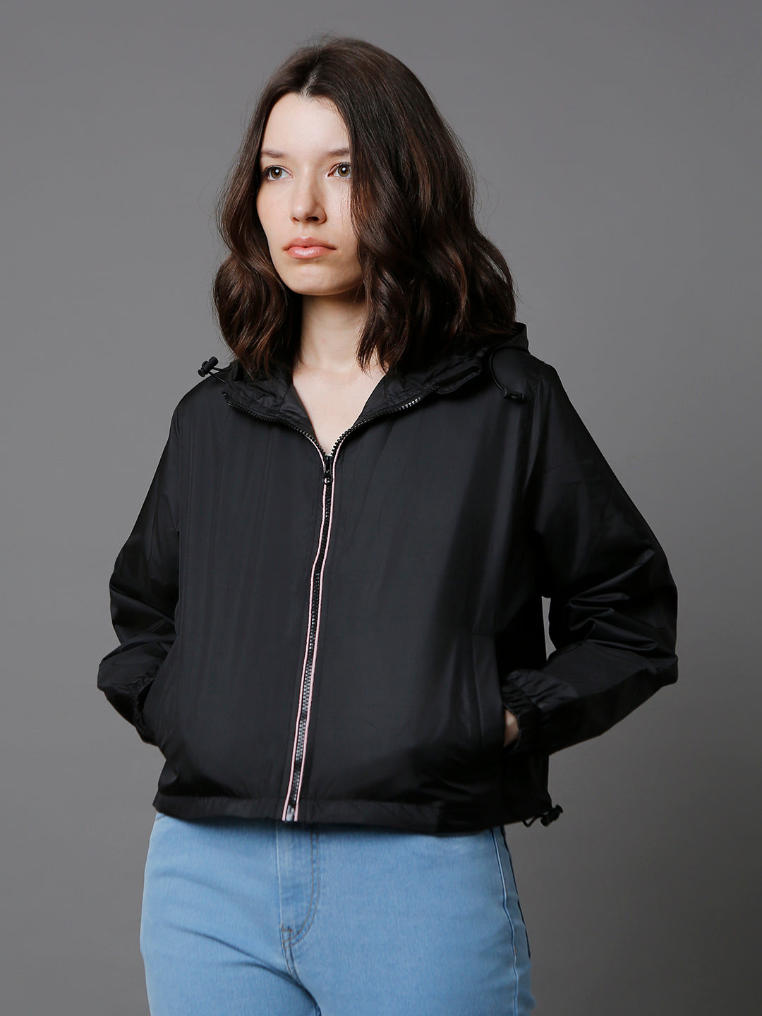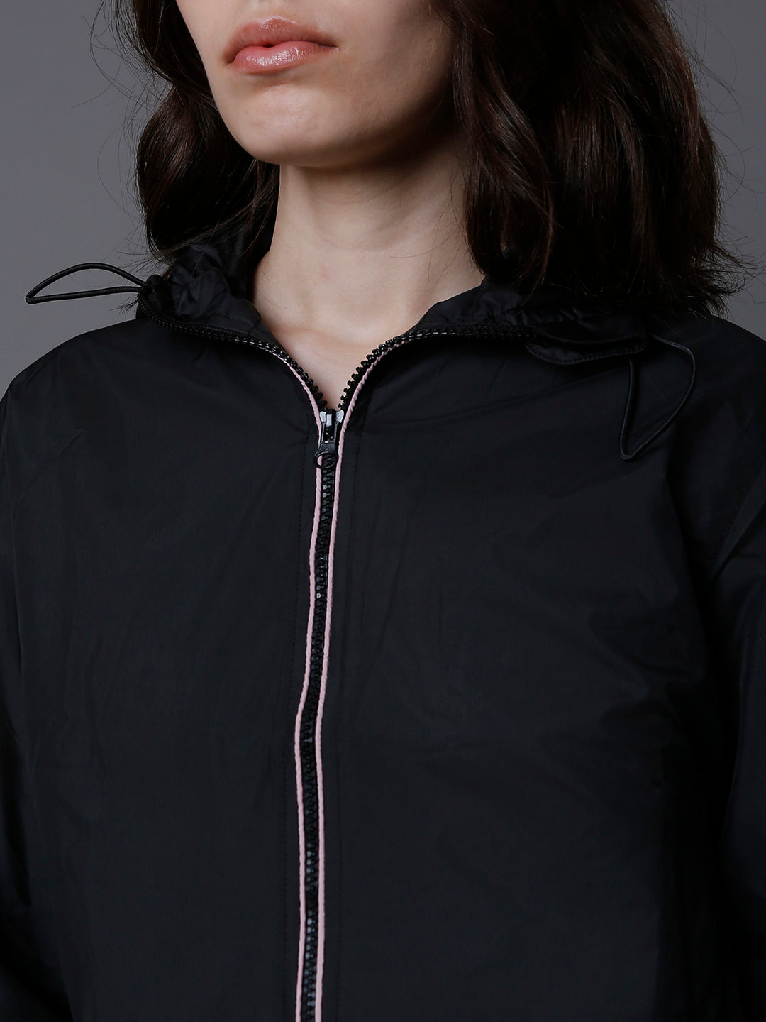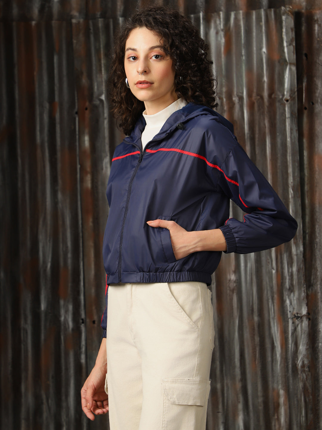 Women Hooded Neck Long Sleeve Open Front Jacket