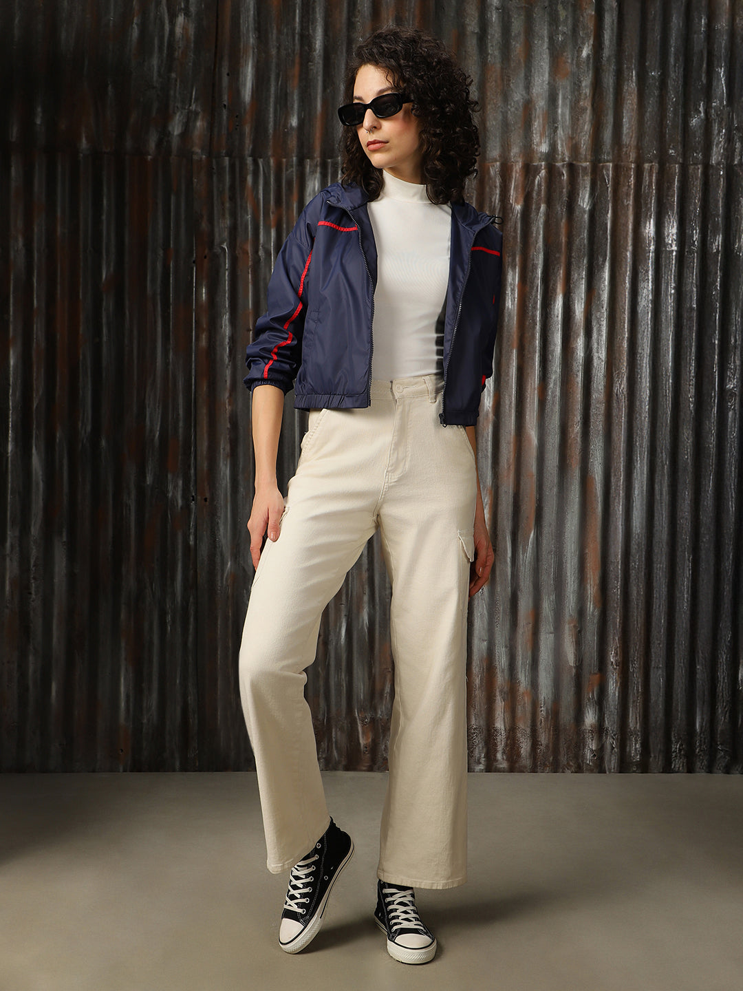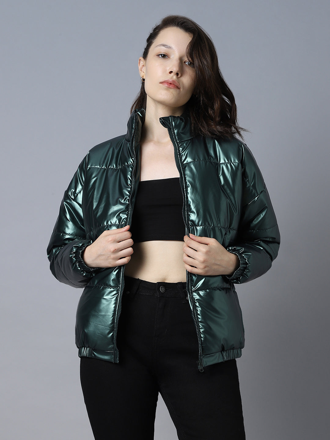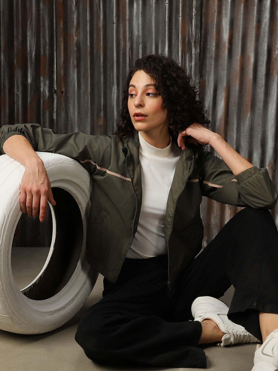 Women Mandarin Collar Long Sleeve Front-Open Sweatshirt