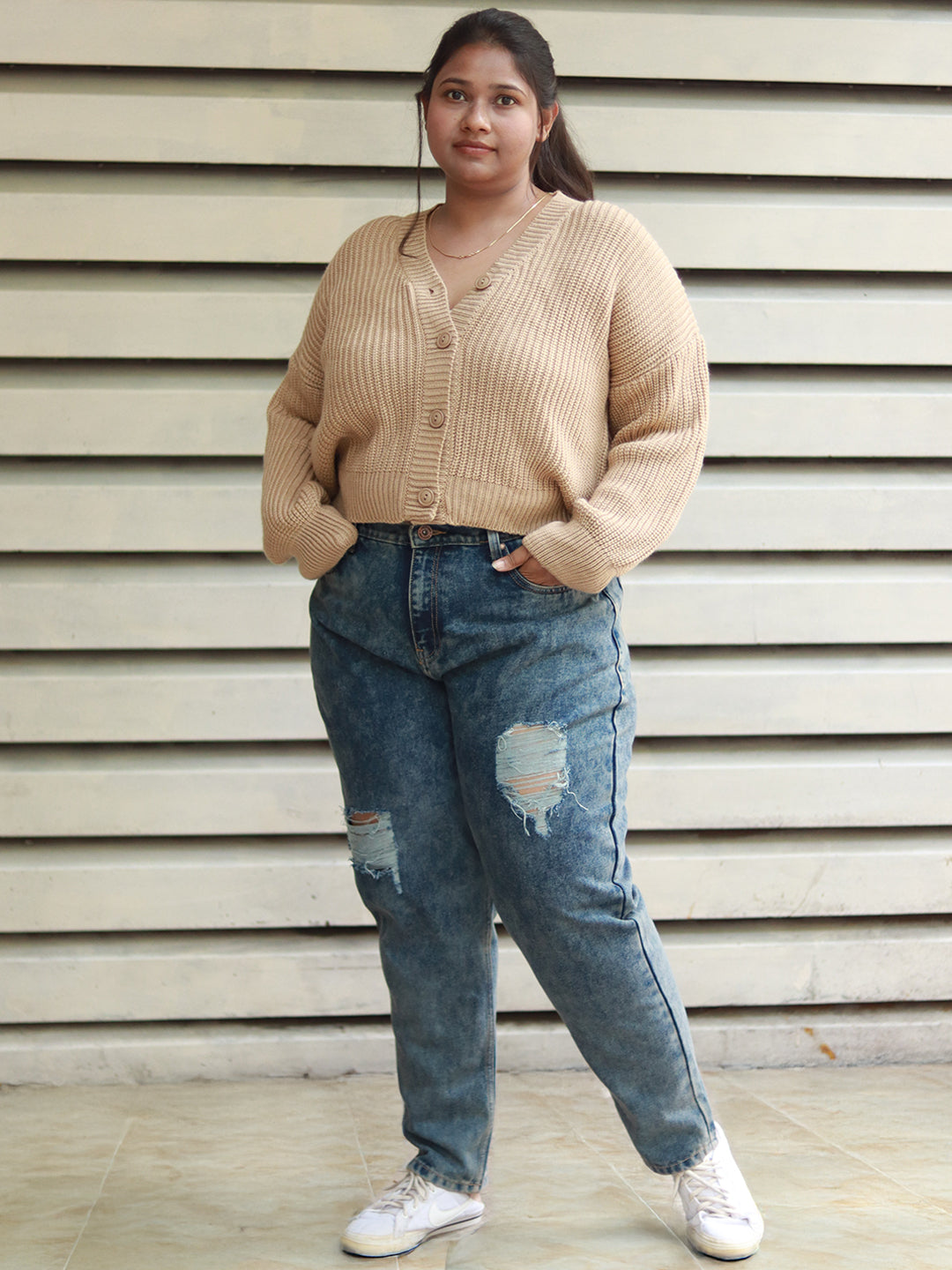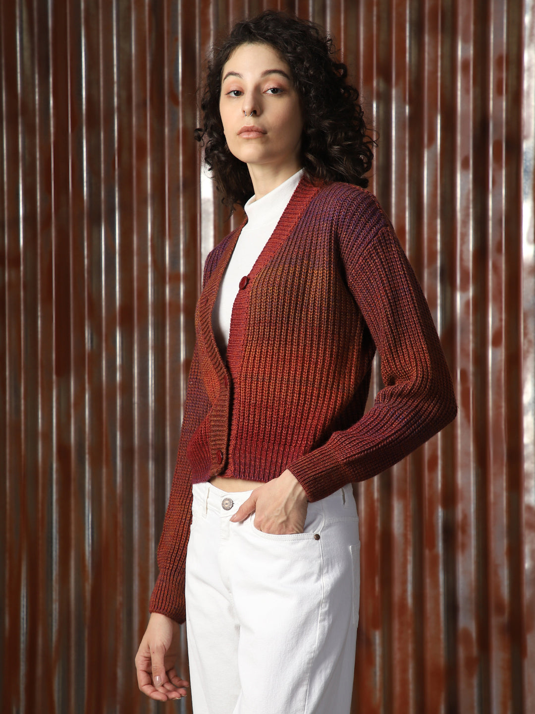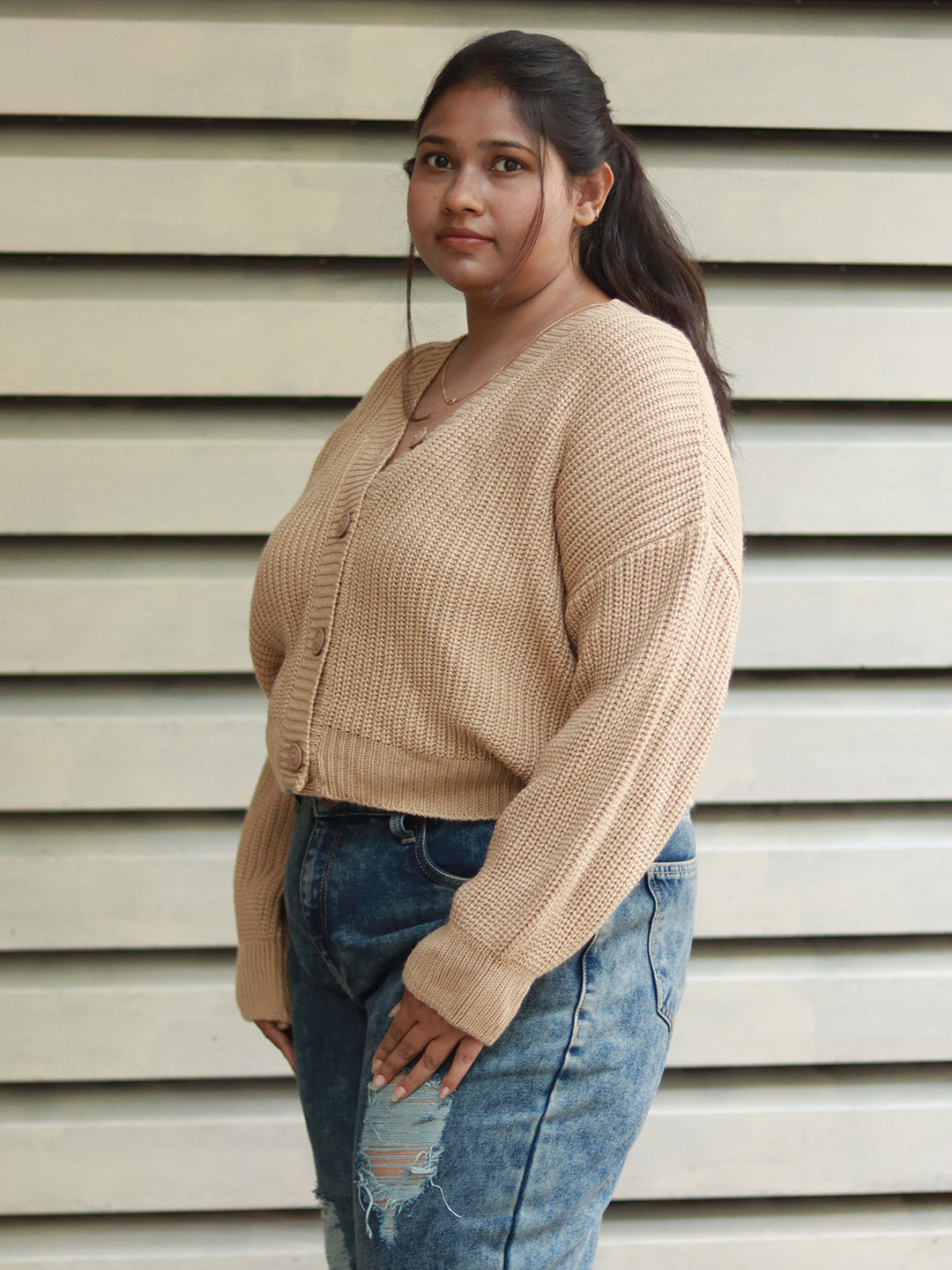 Women Crop Sweater Boxy Fit Cardigan