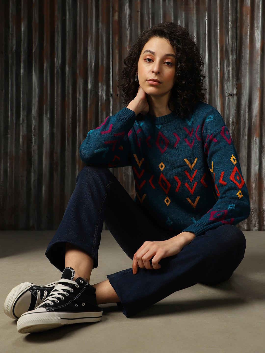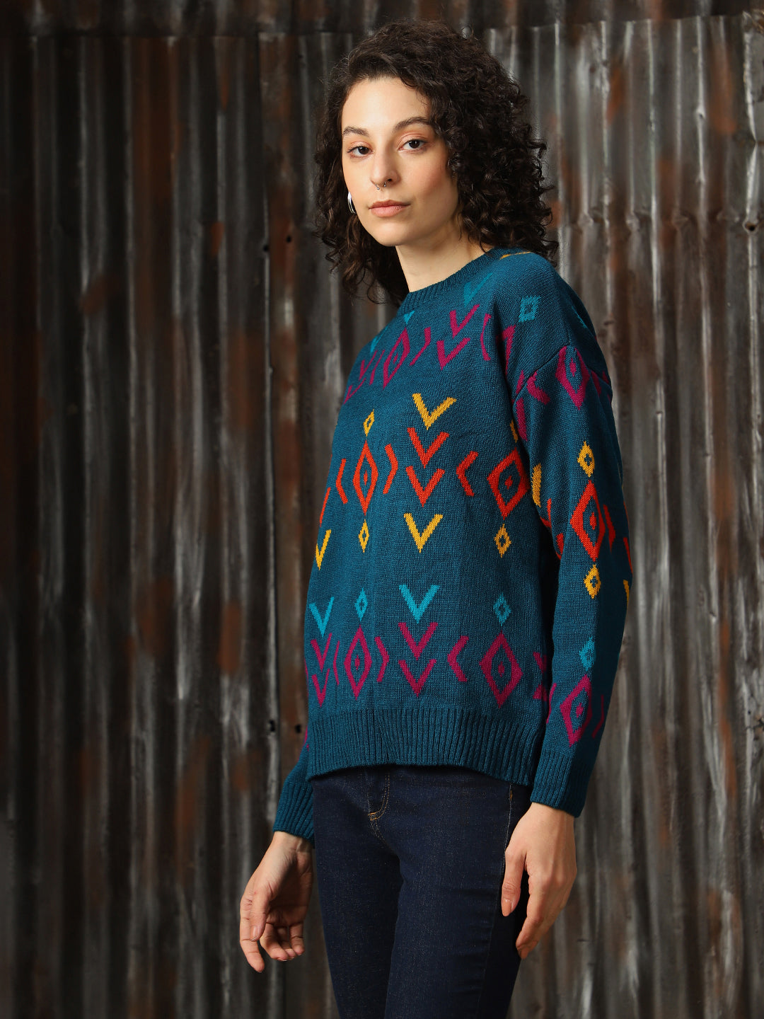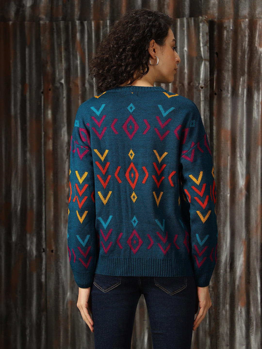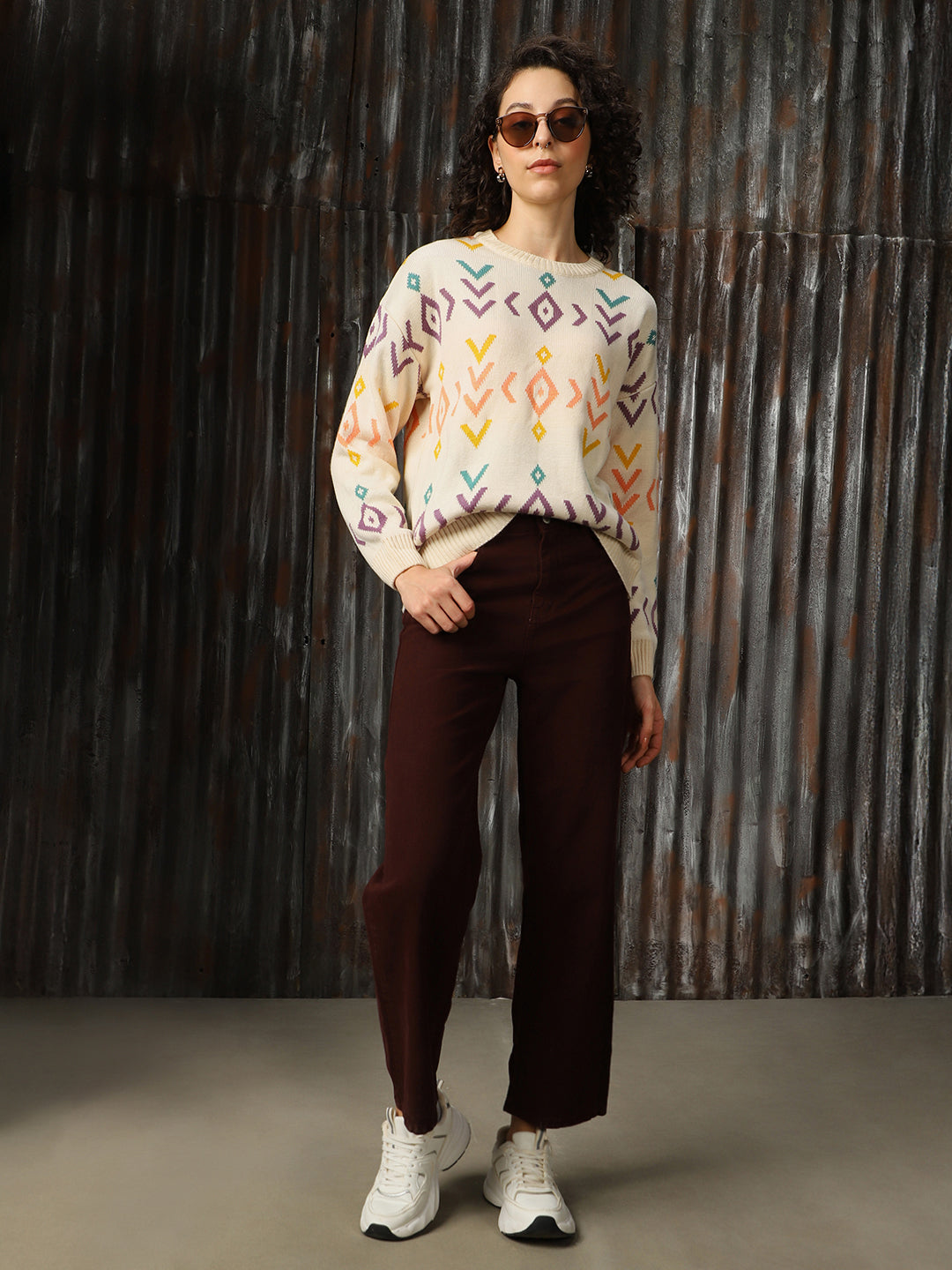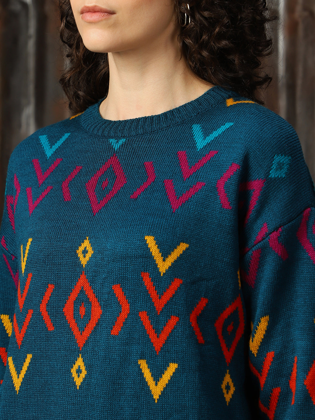Women Abstract Pattern Round Neck Boxy Fit Pullover