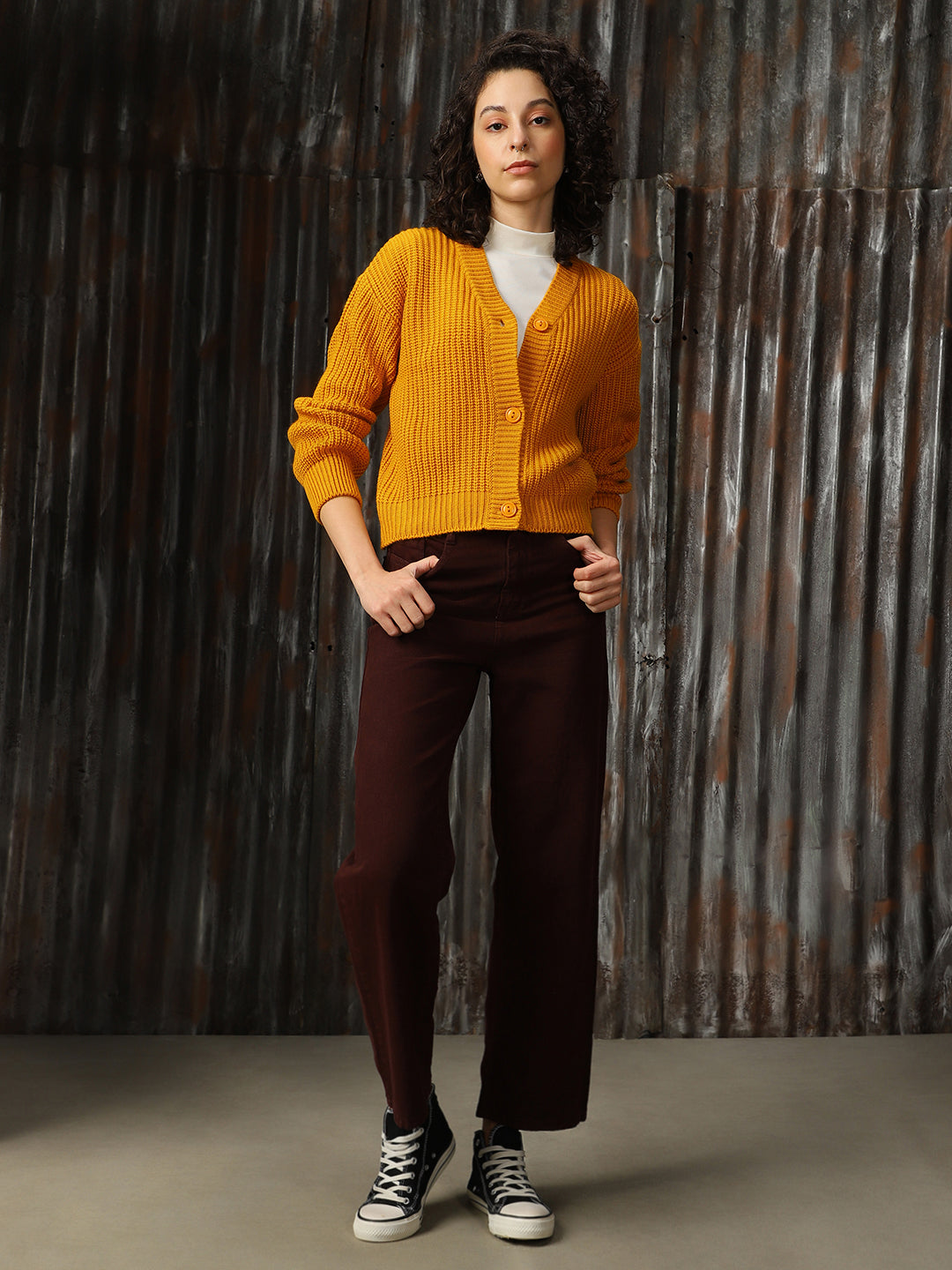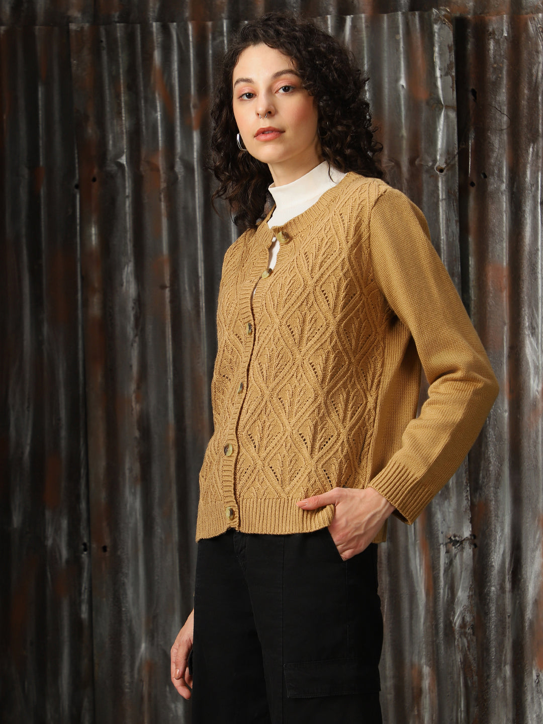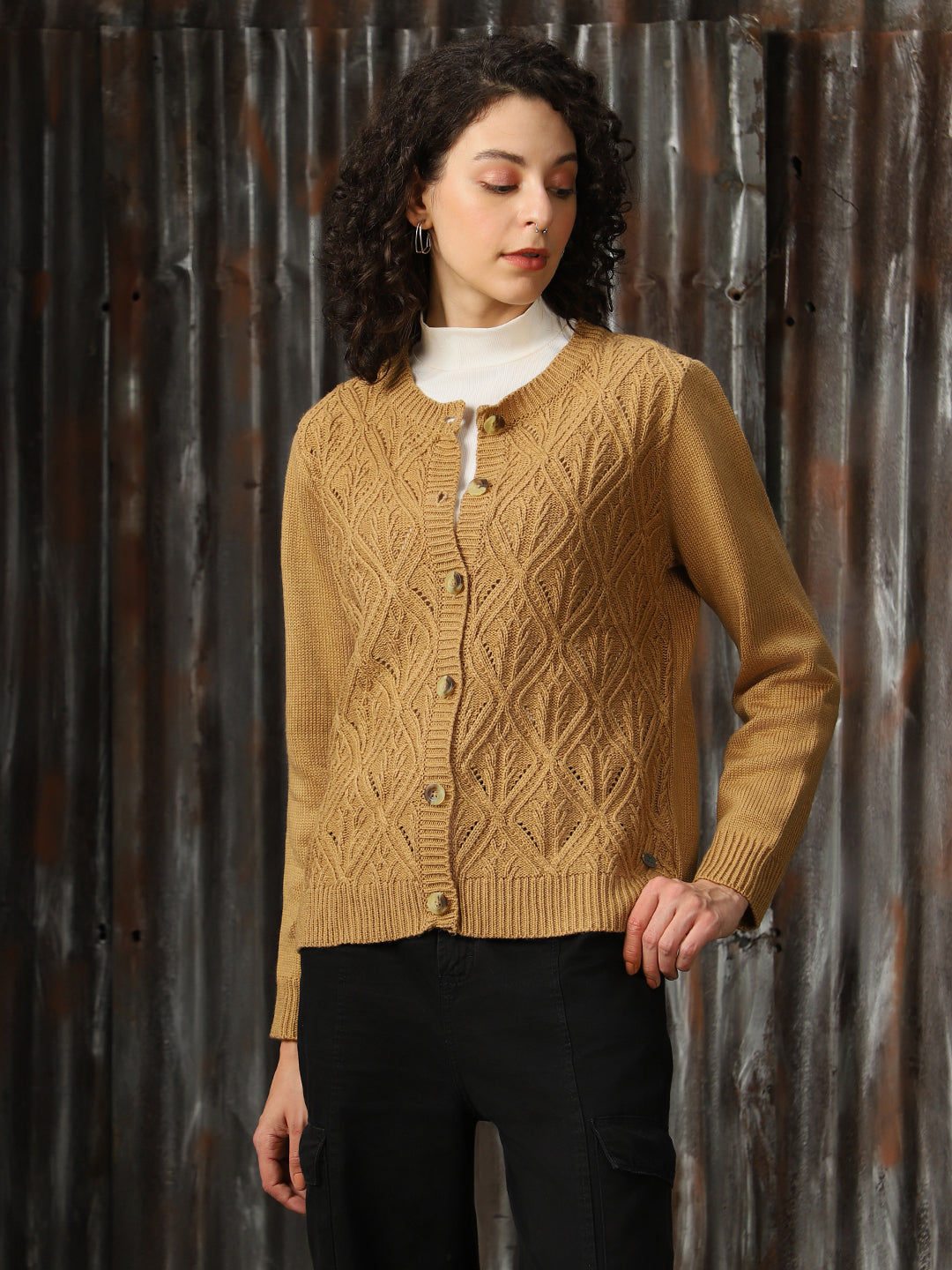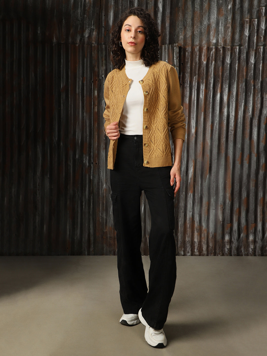 Women Cable Knit Regular Fit Cardigan