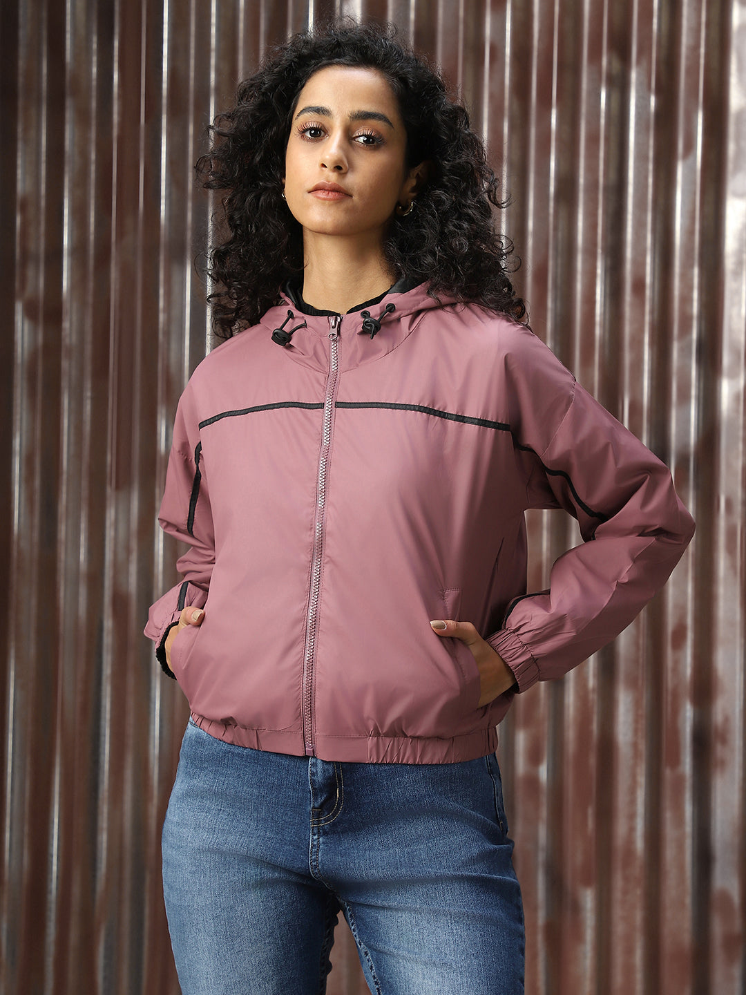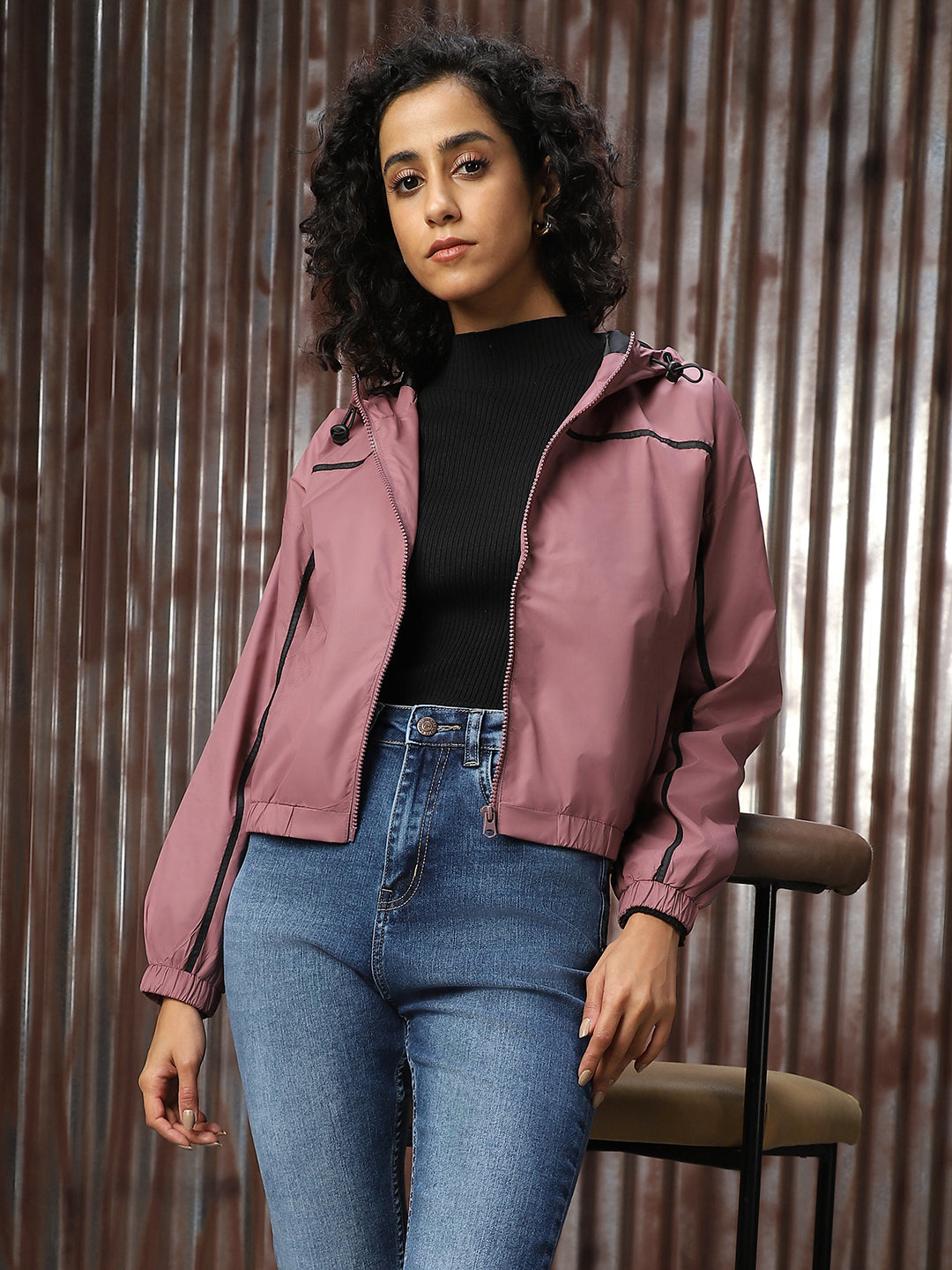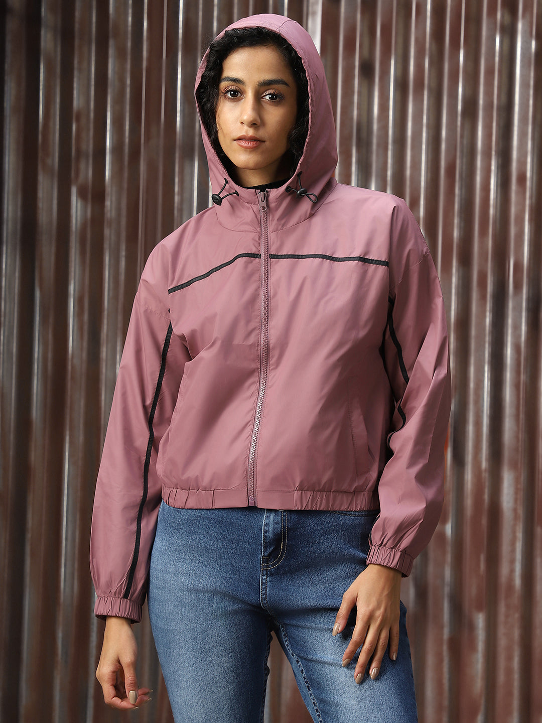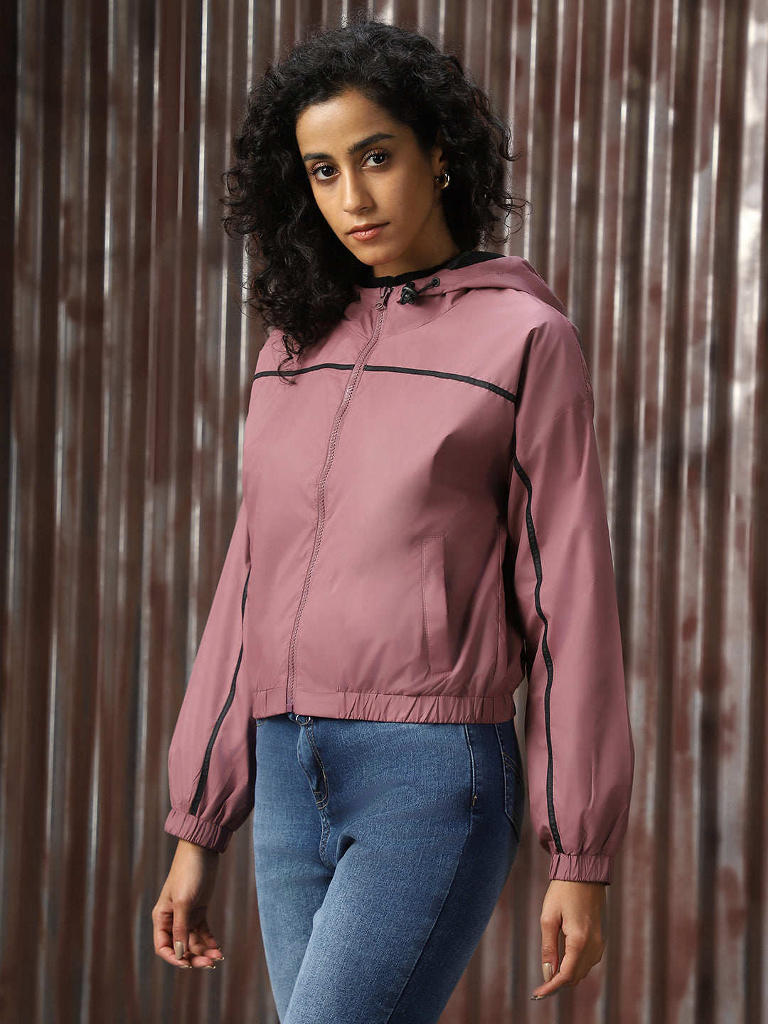 Women Hooded Neck Long Sleeves Windcheater Sporty Jacket