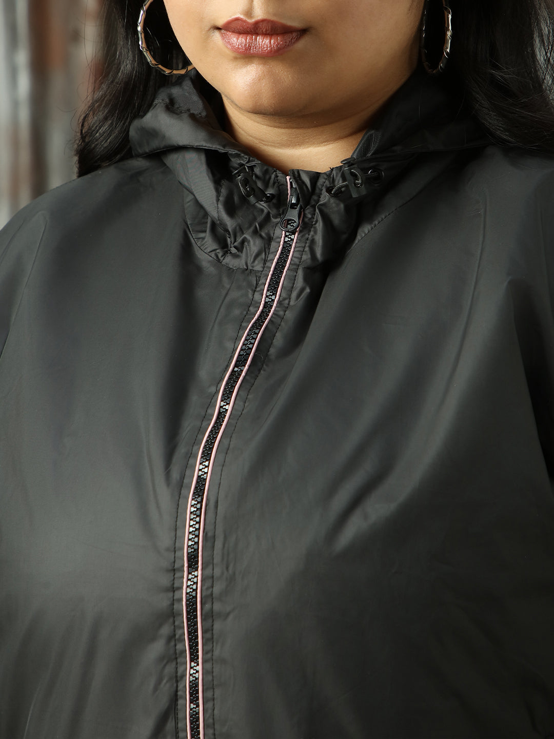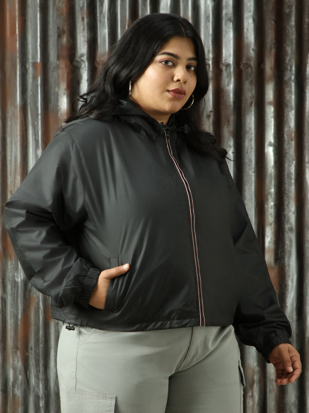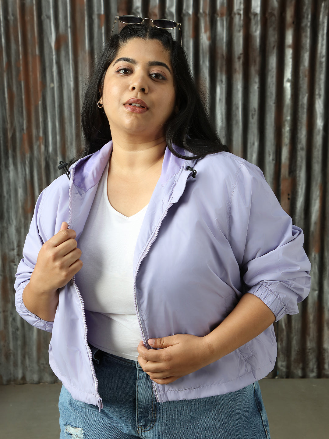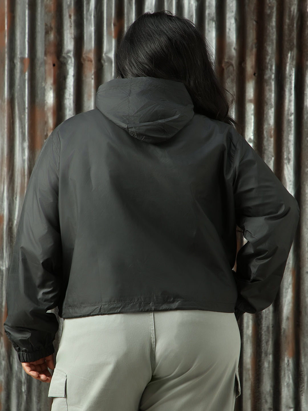 Women Hooded Neck Long Sleeves Windcheater Sporty Jacket
