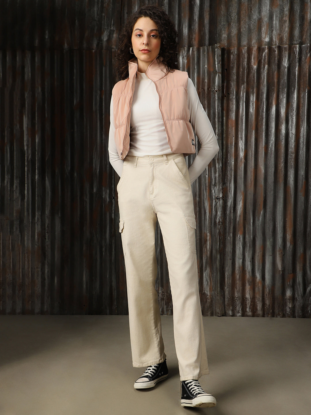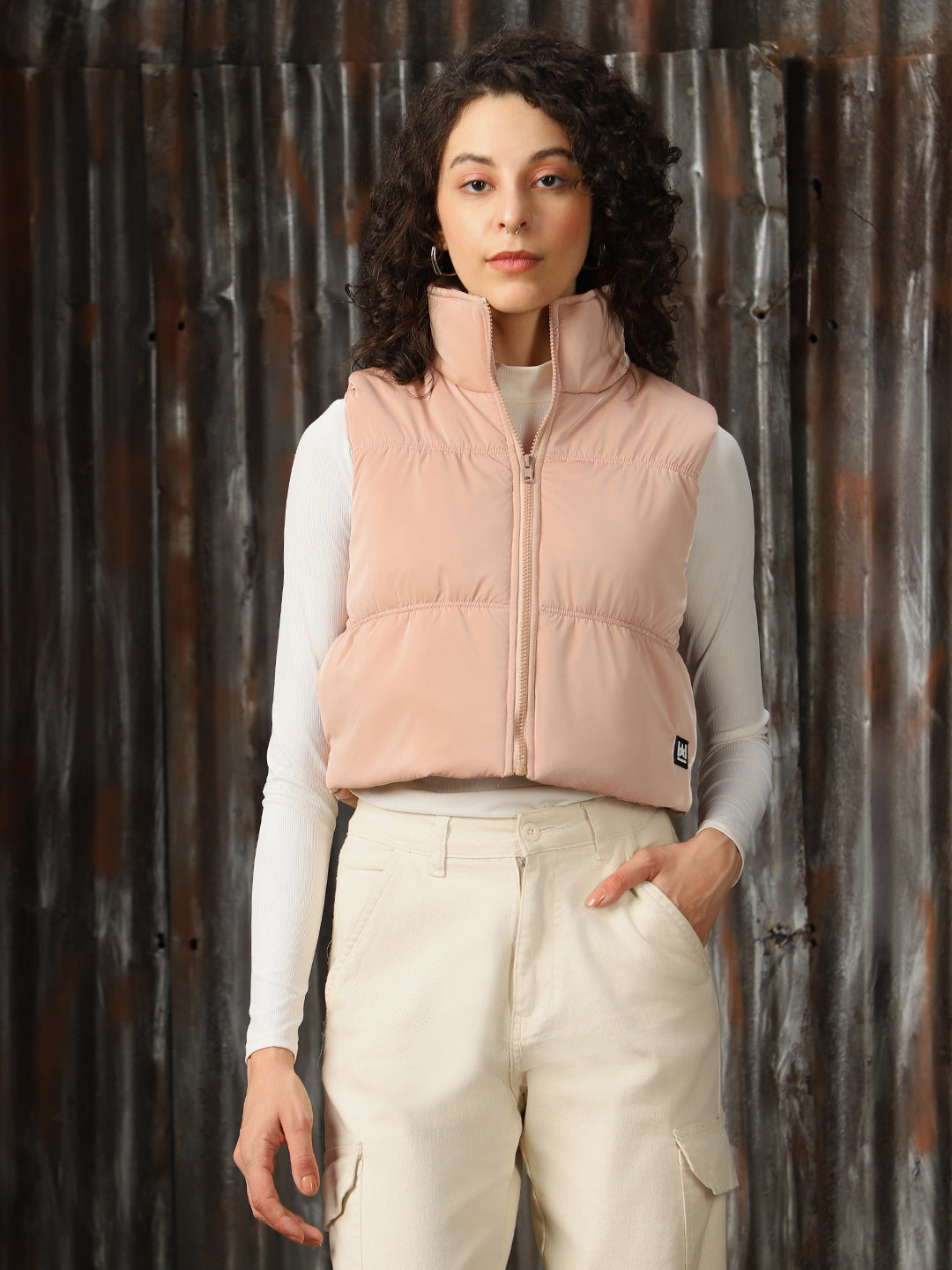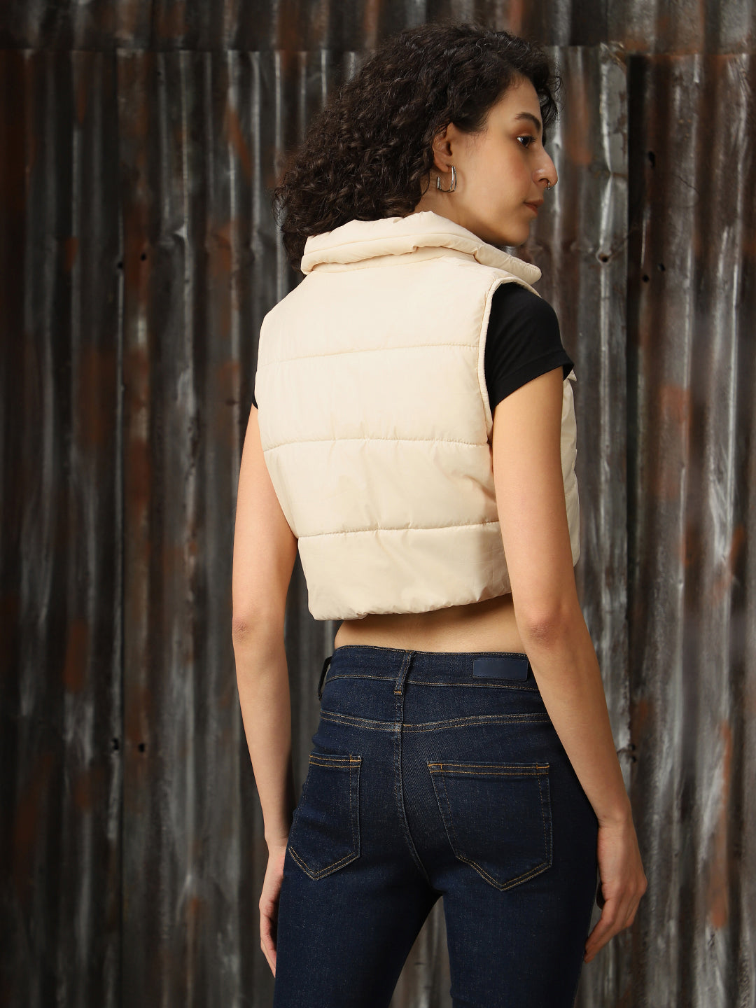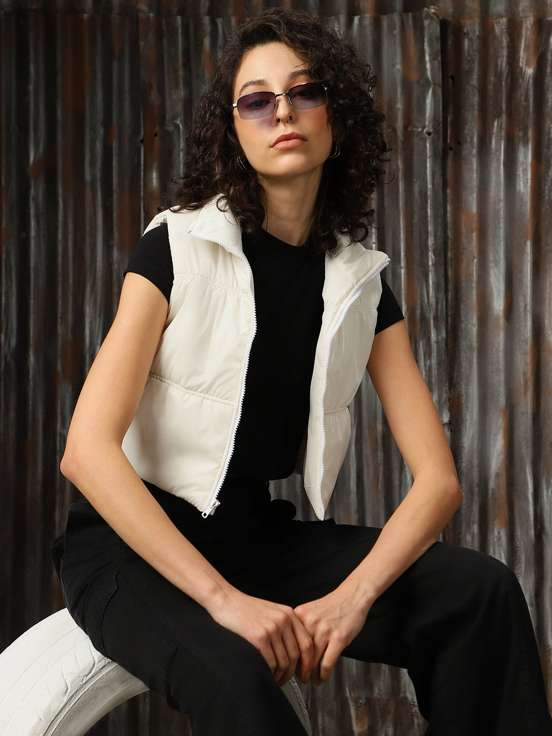 Women Solid Embroidered Sleeves Mandarin Collar Top