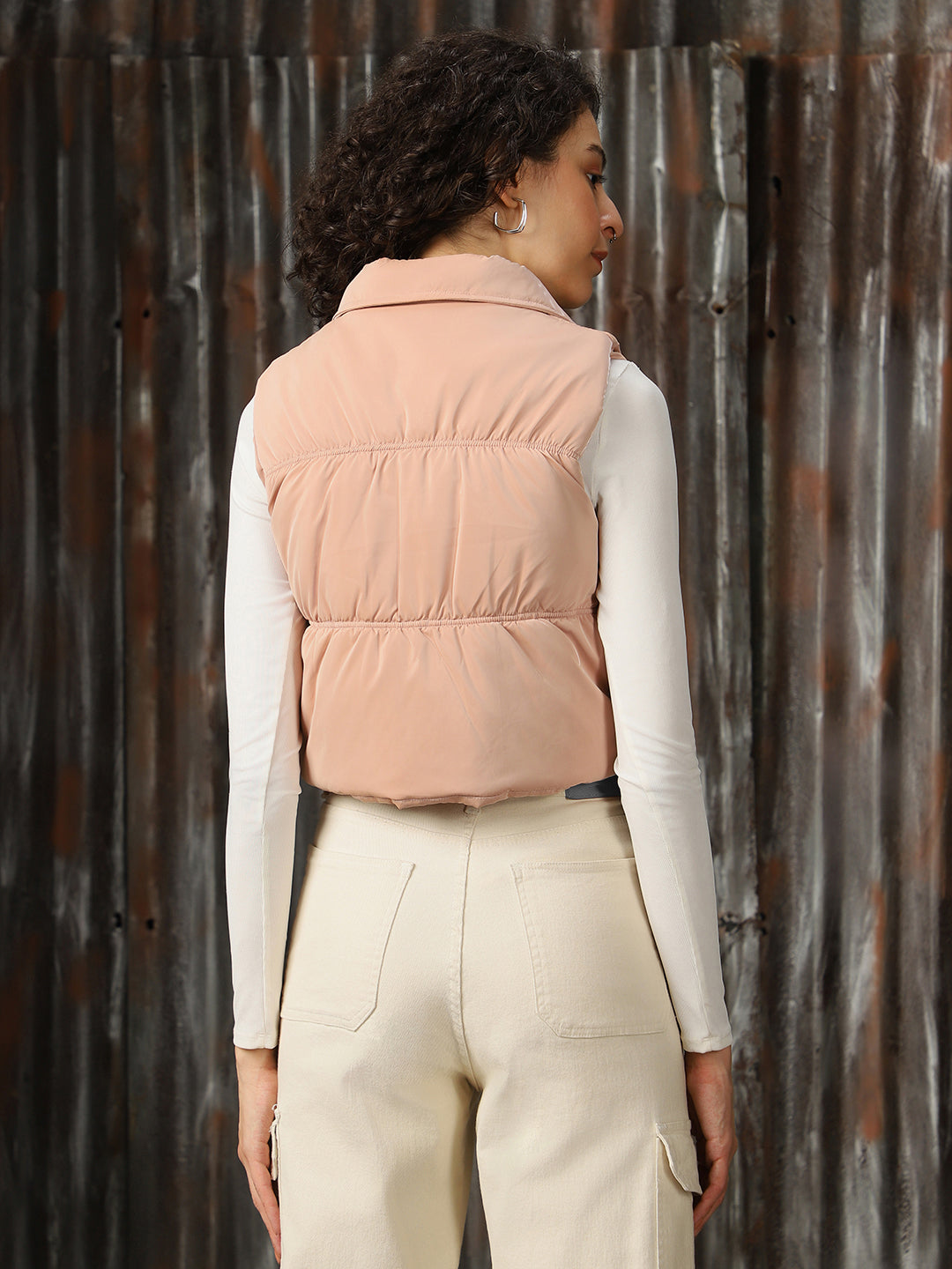 Women Rust Solid Textured Sleeveless Round Neck Ruffle Top