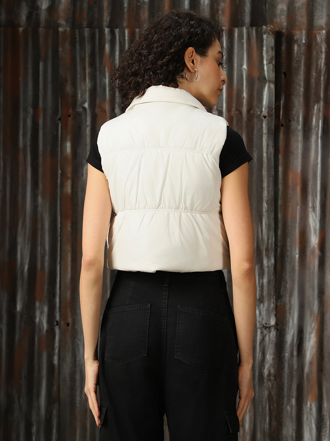 Women White Embroidered Spread Collar Sleeveless Shirt Dress