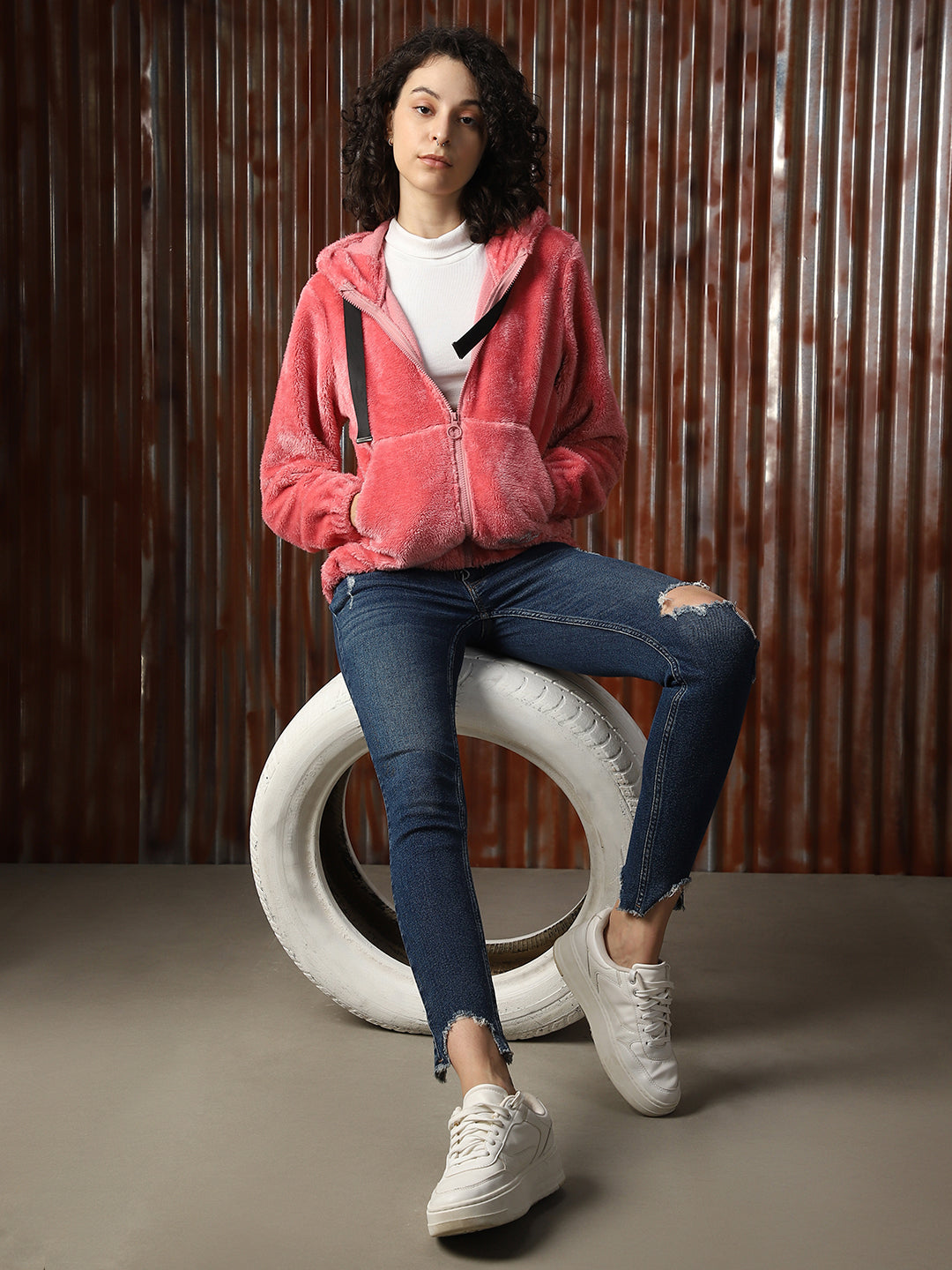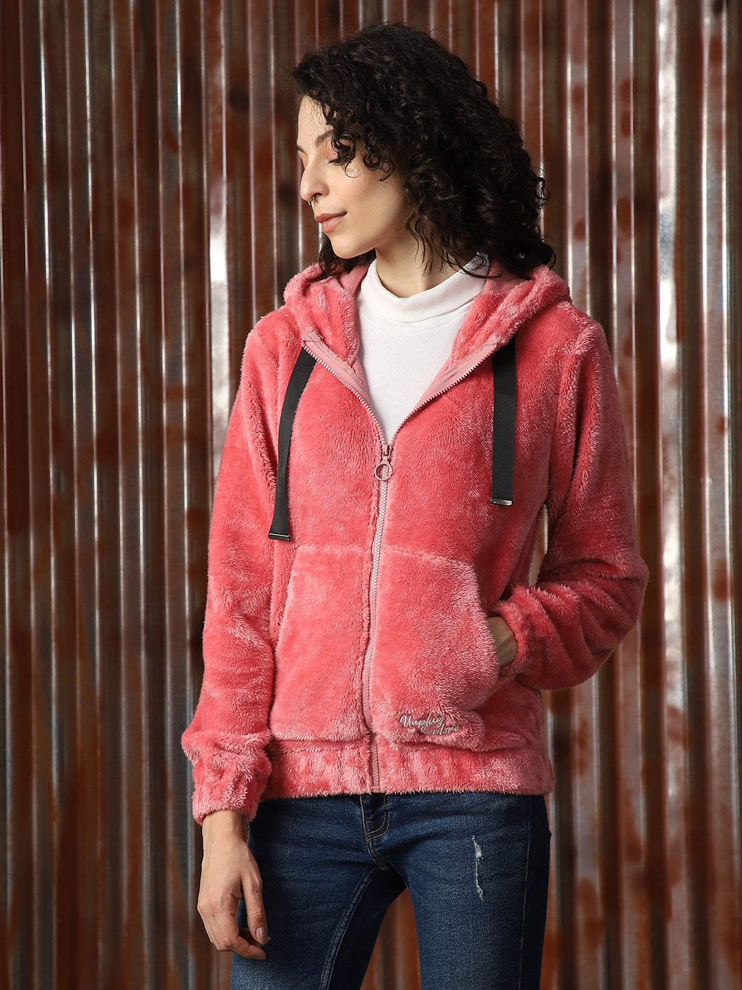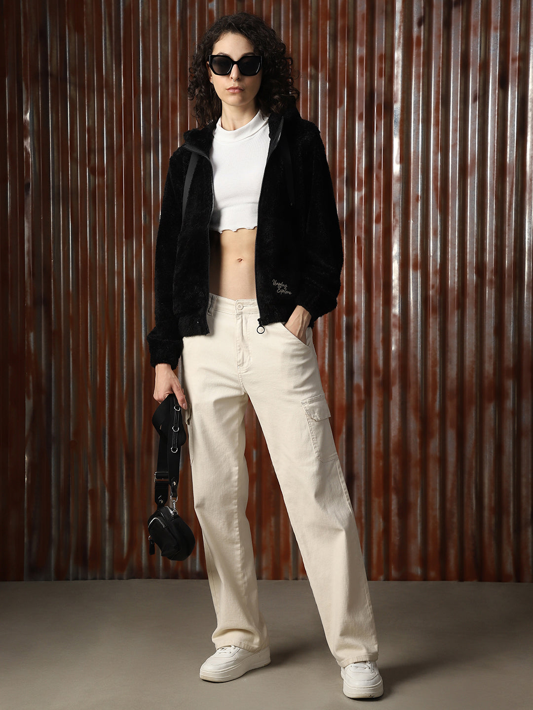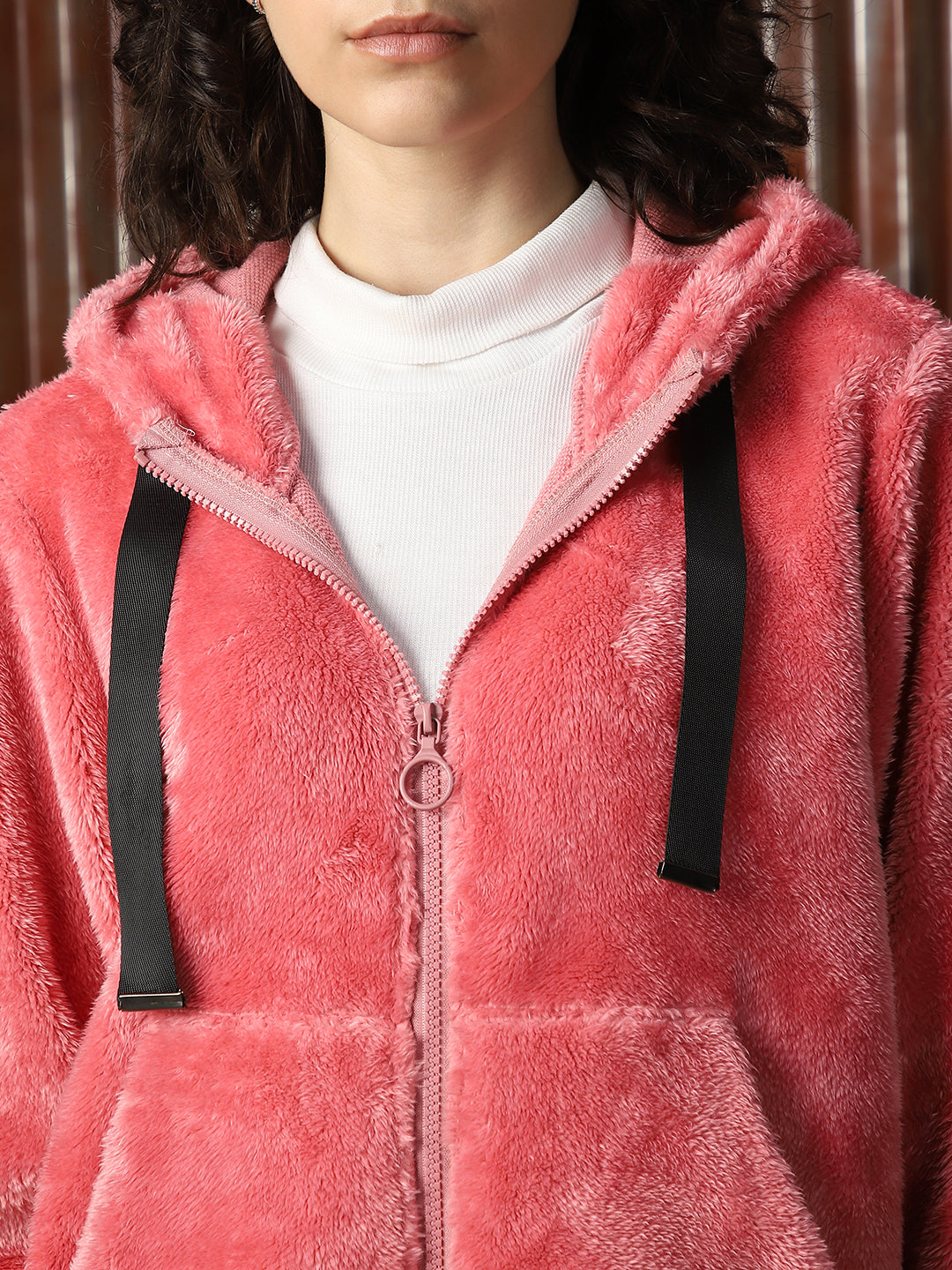 Women Fur Hooded Boxy Fit Tailored Front Open Jacket