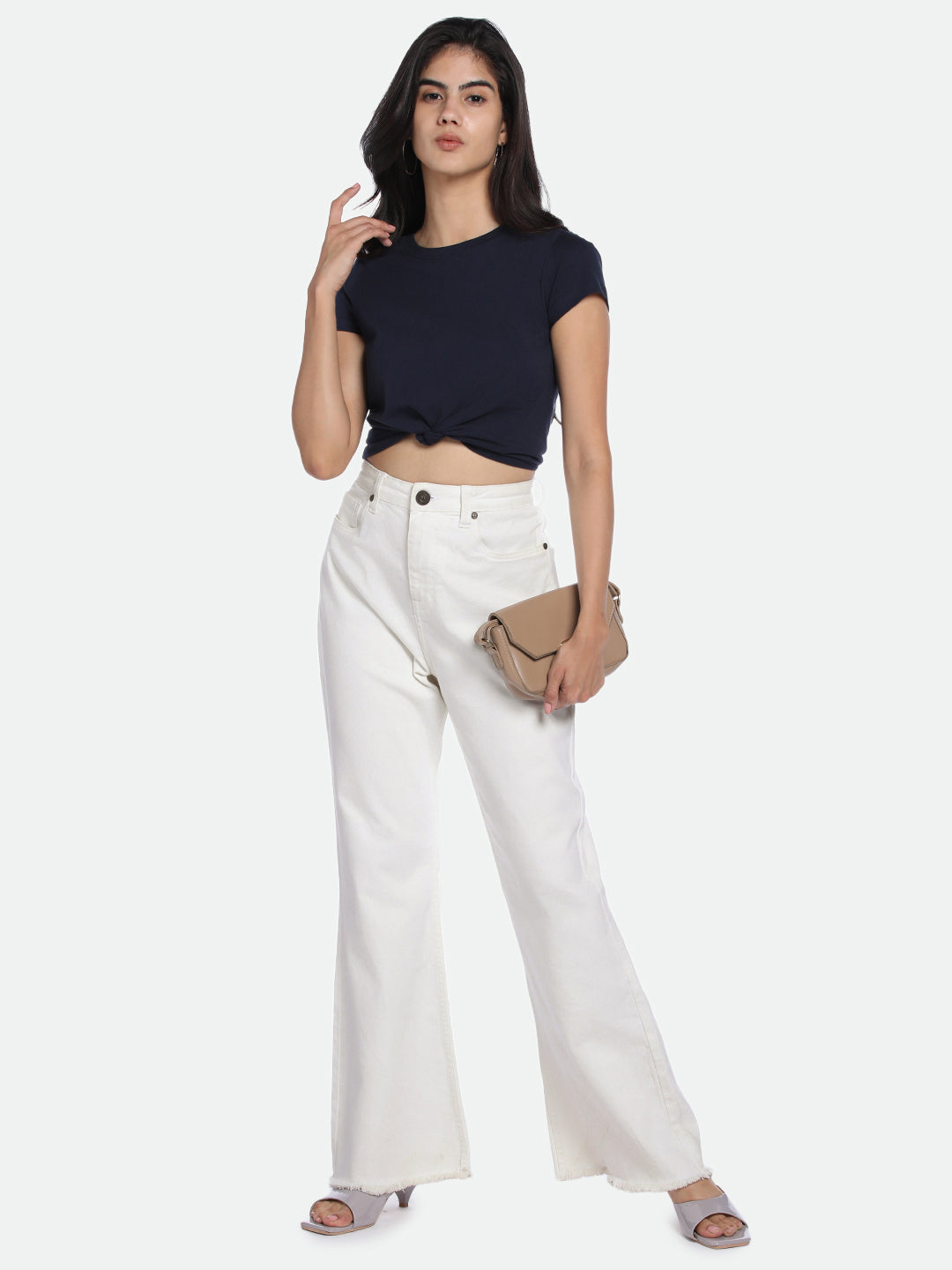 DL Woman Indigo Solid Relaxed Fit Wide Leg High Rise Jeans