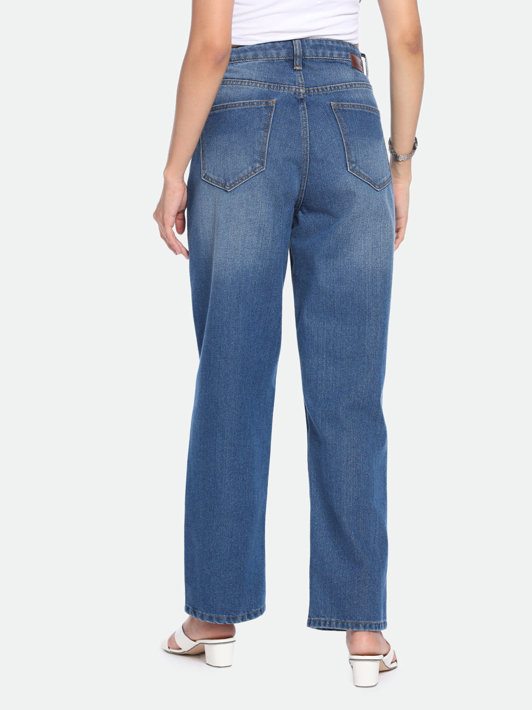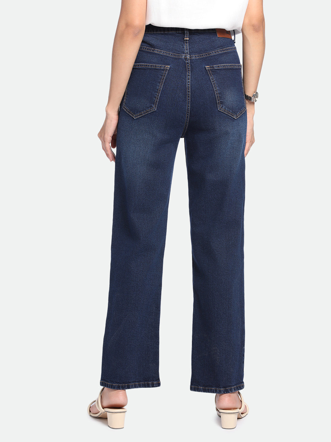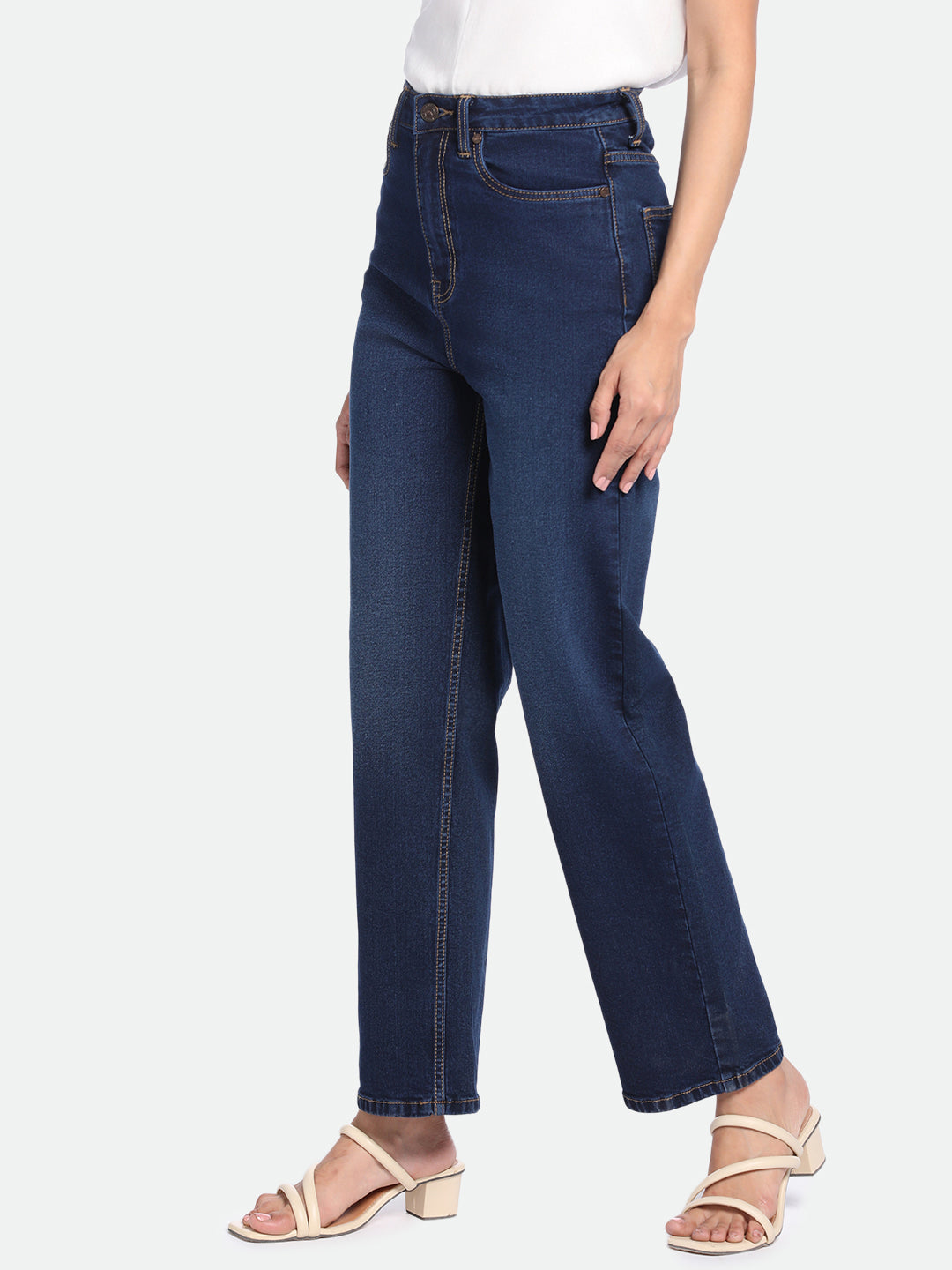DL Woman Indigo Solid Relaxed Fit High Rise Jeans