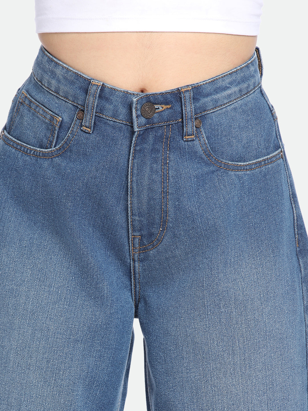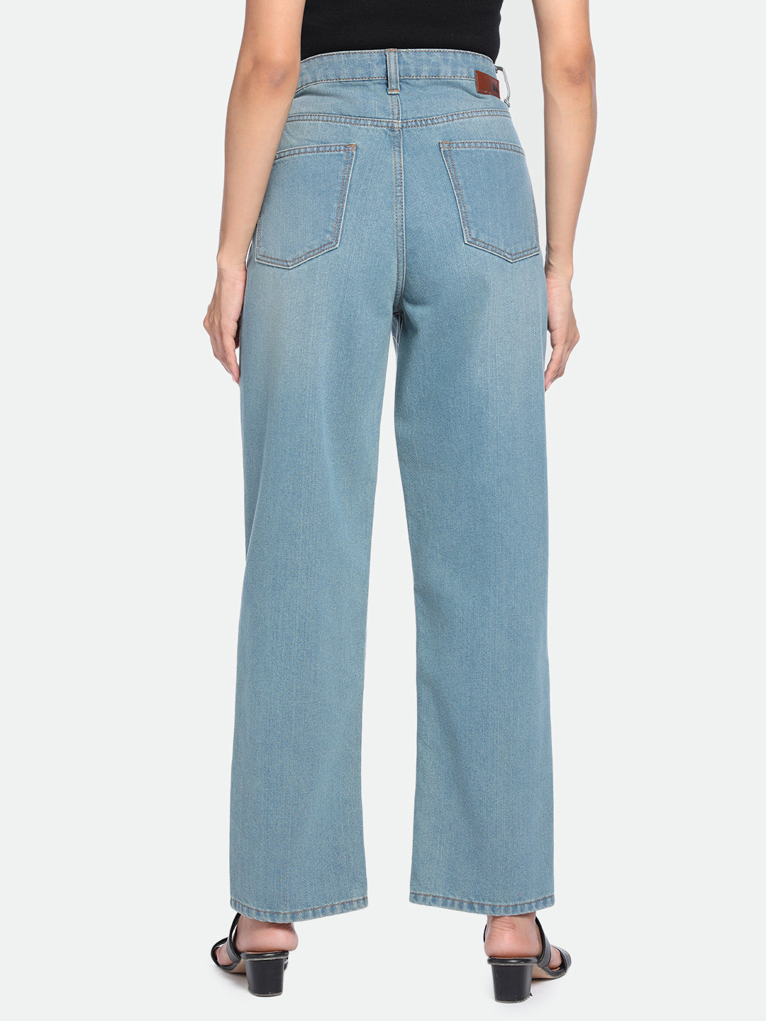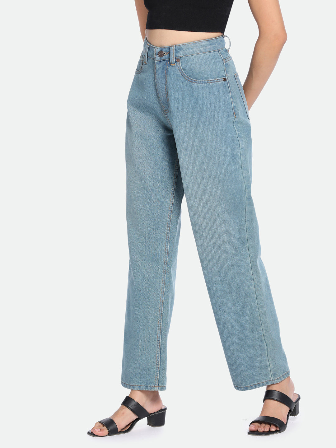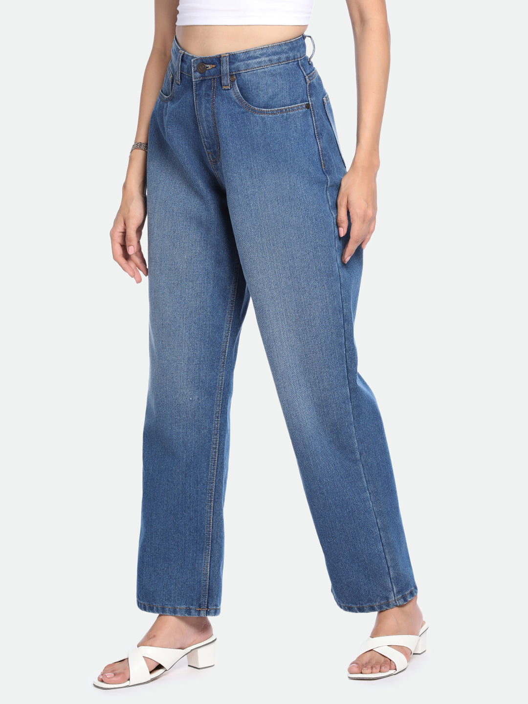 DL Woman Indigo Solid Relaxed Fit High Rise Jeans