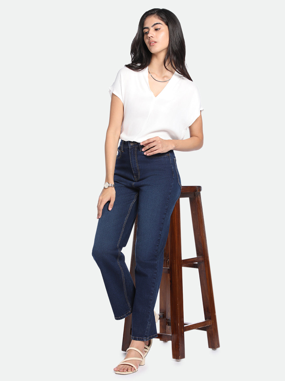 DL Woman Indigo Straight Fit High rise Stretchable Jeans