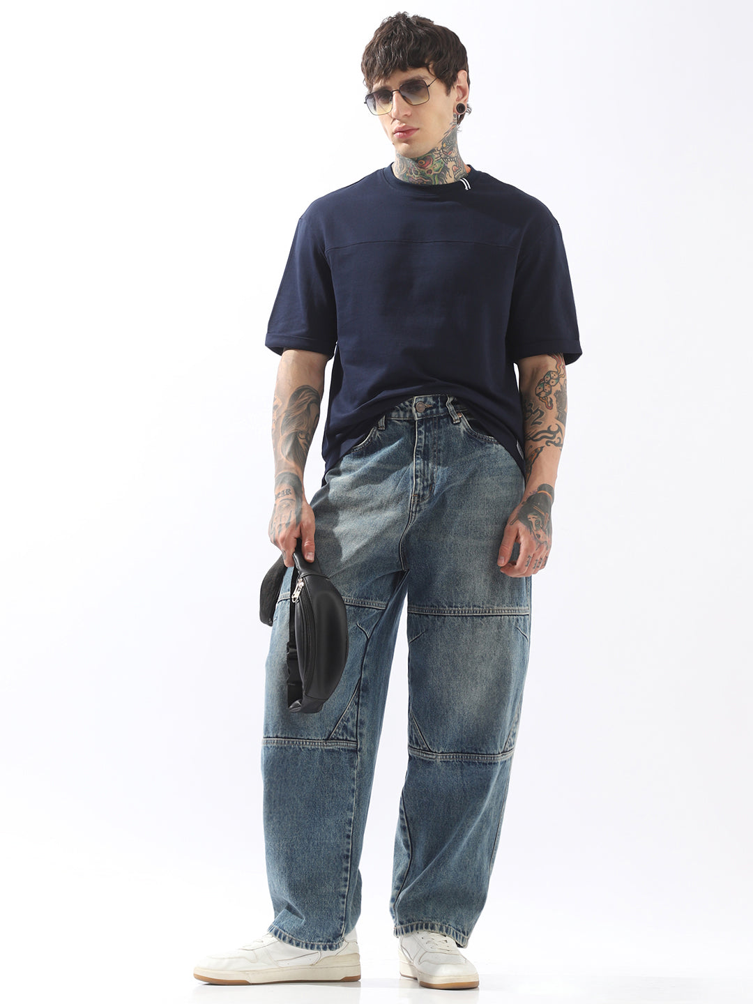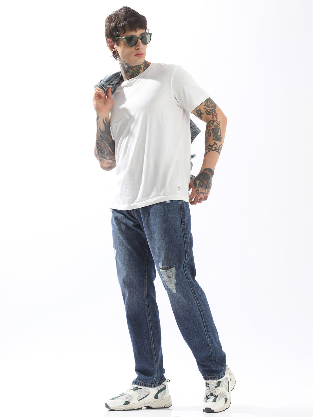 Men's Dark Blue Slim Fit Mid Rise Denim Jeans