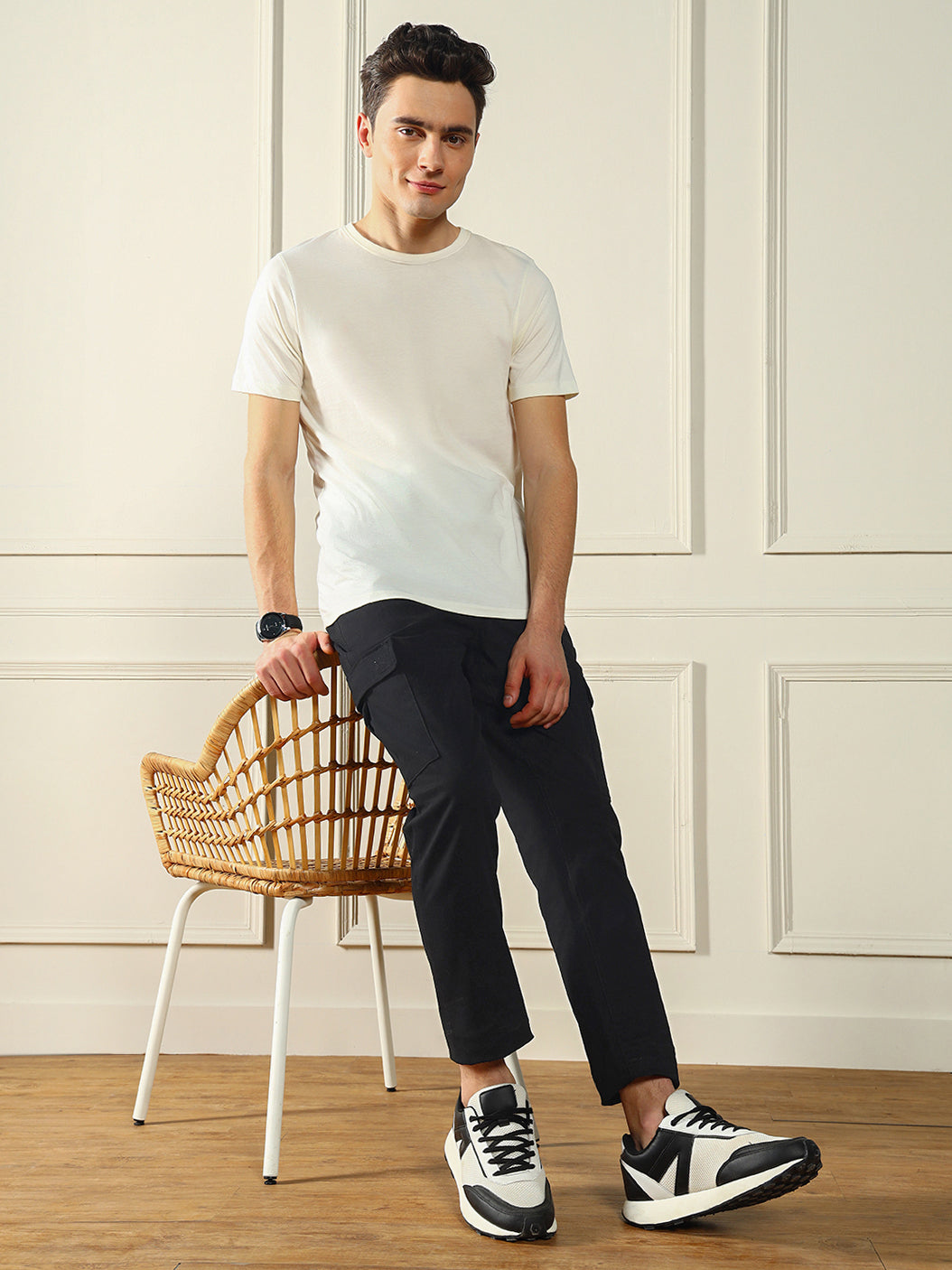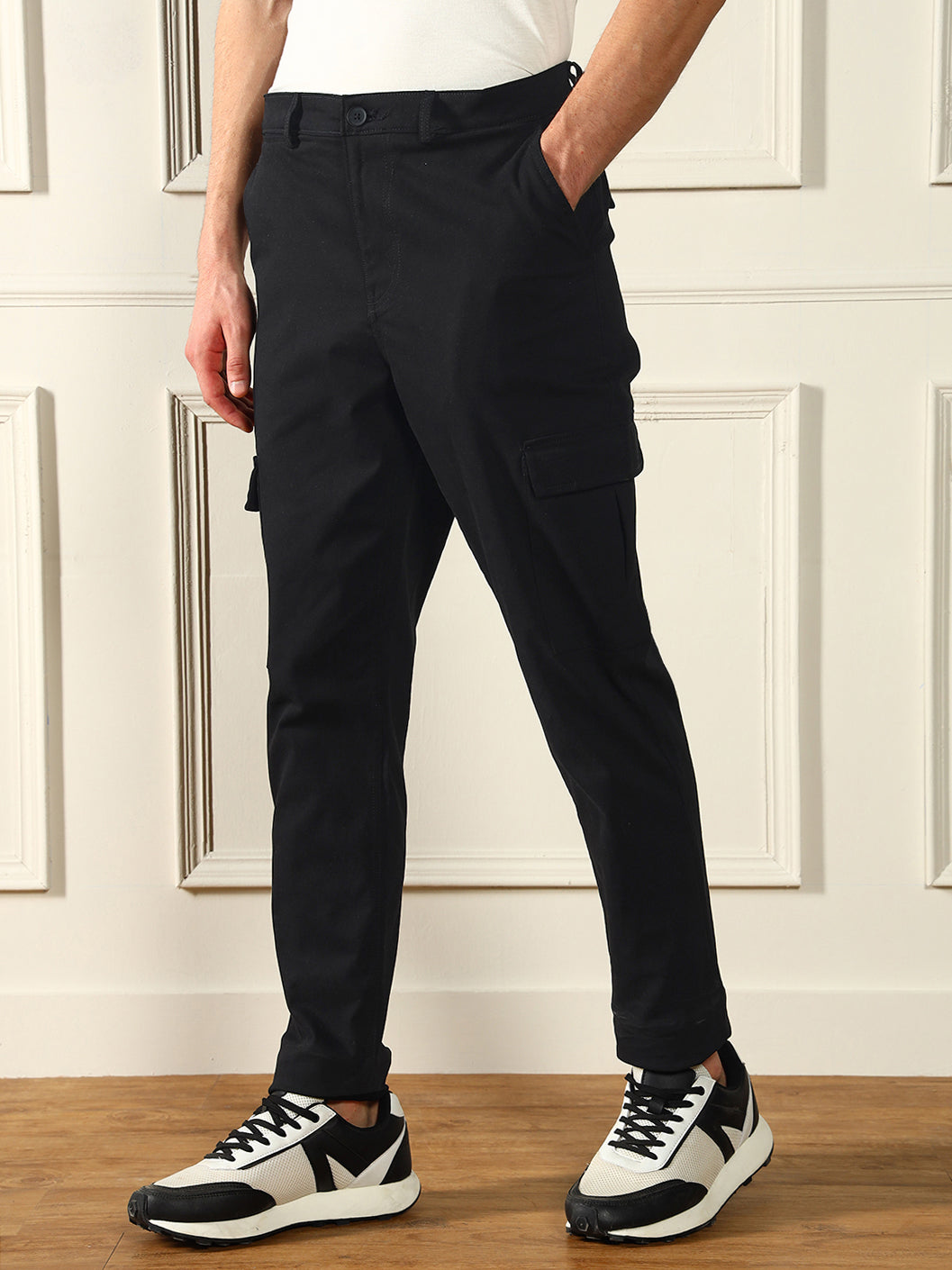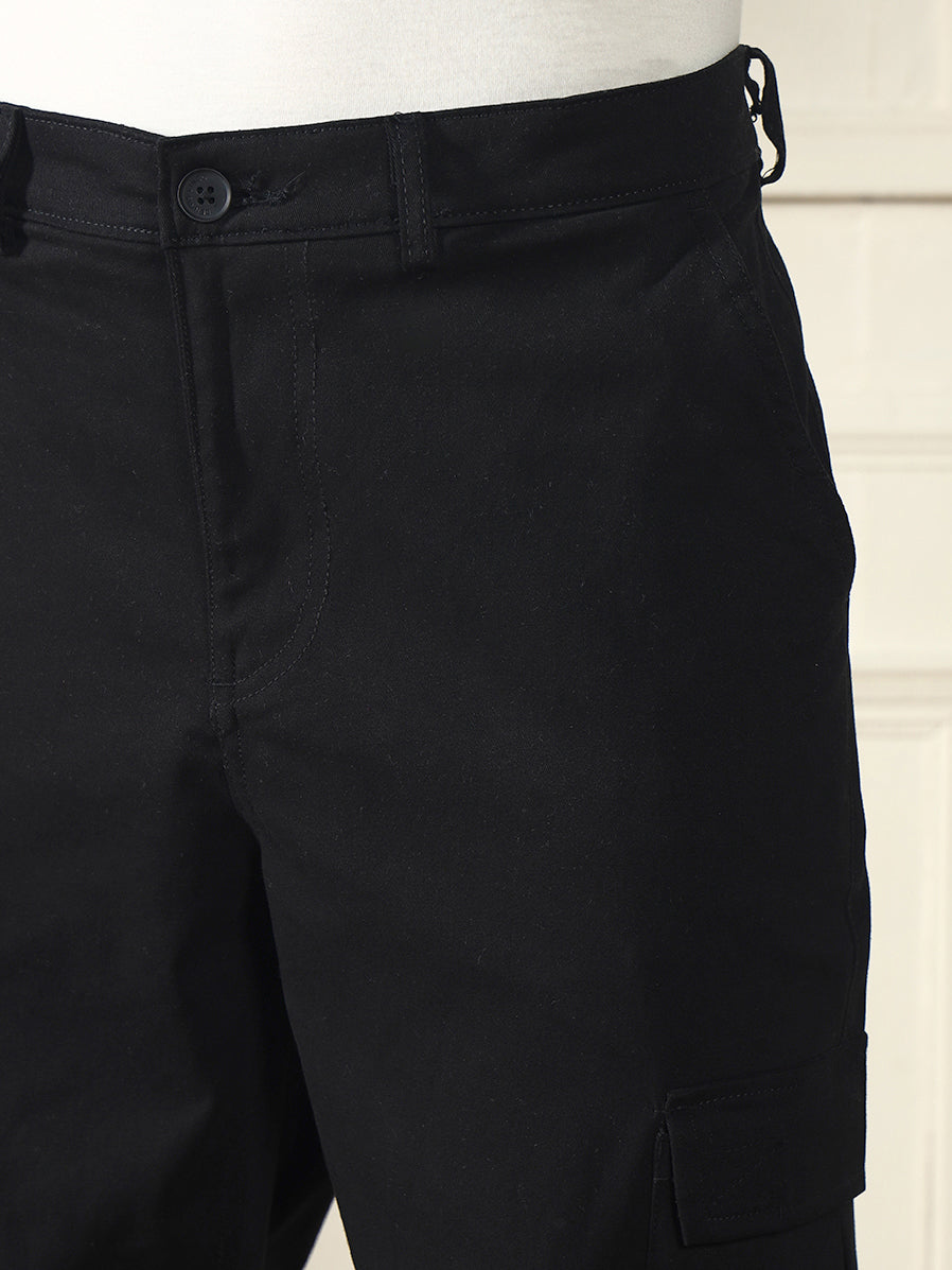 Men's Black Solid Straight fit Stretchable Cargo Trousers