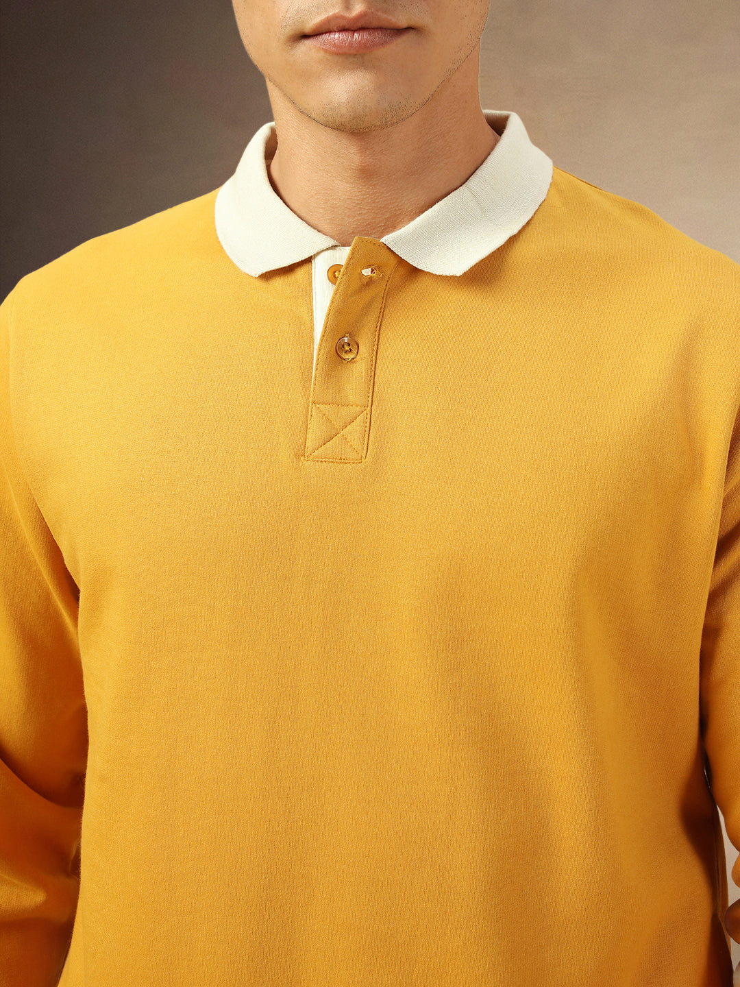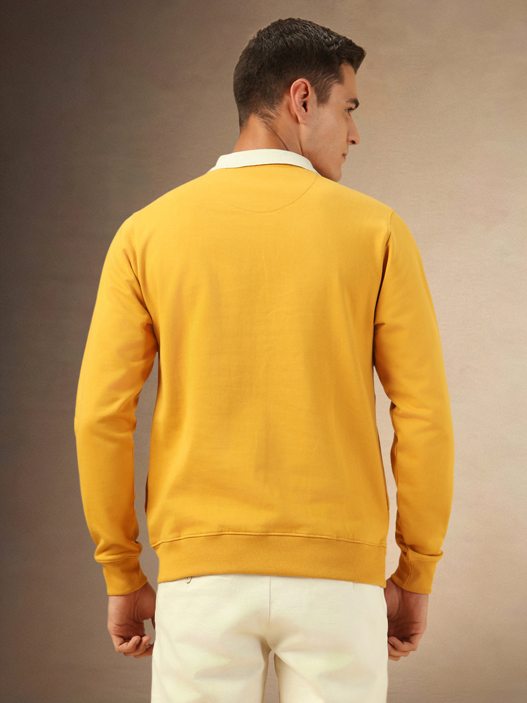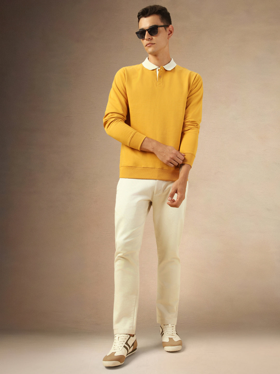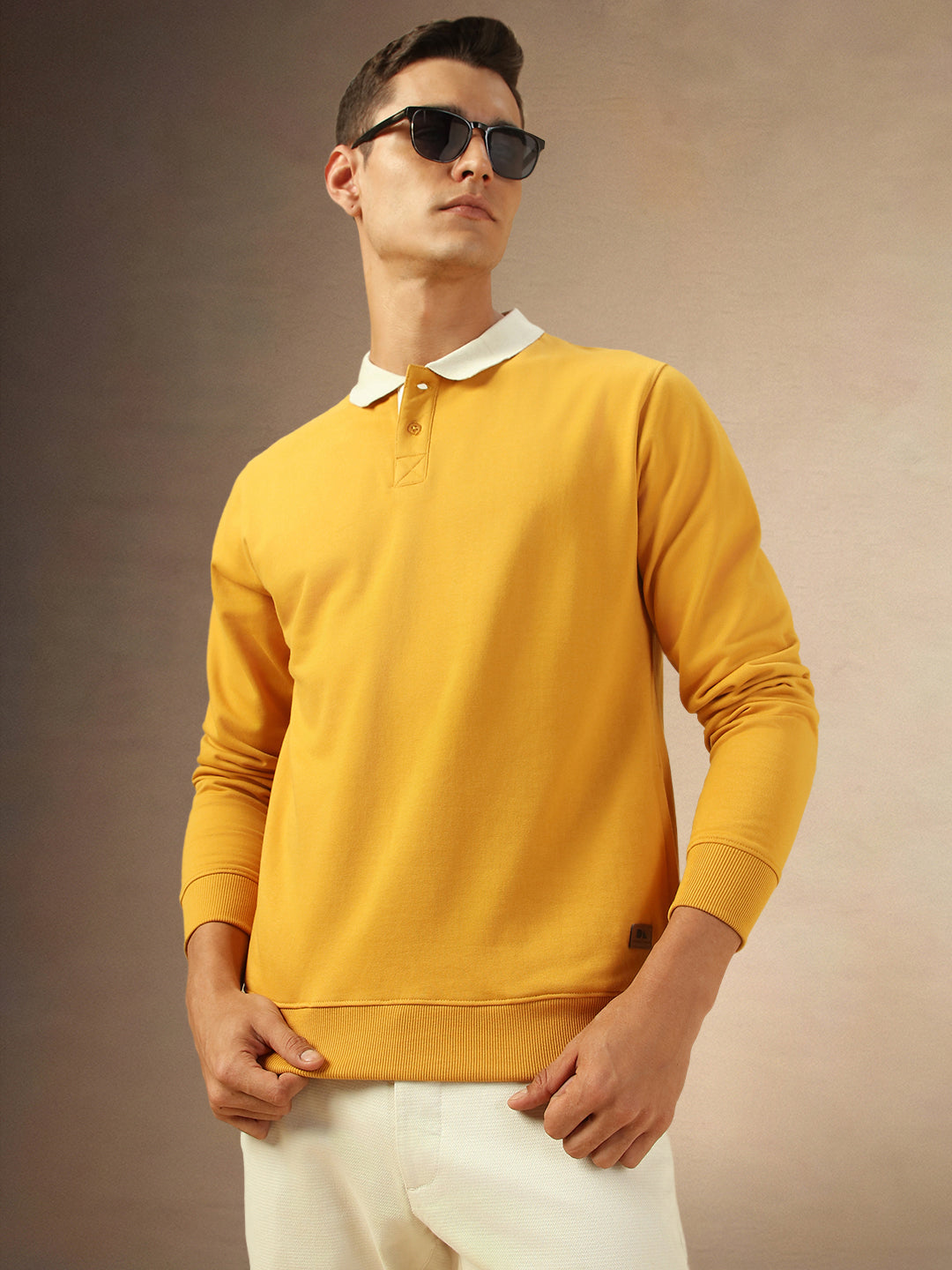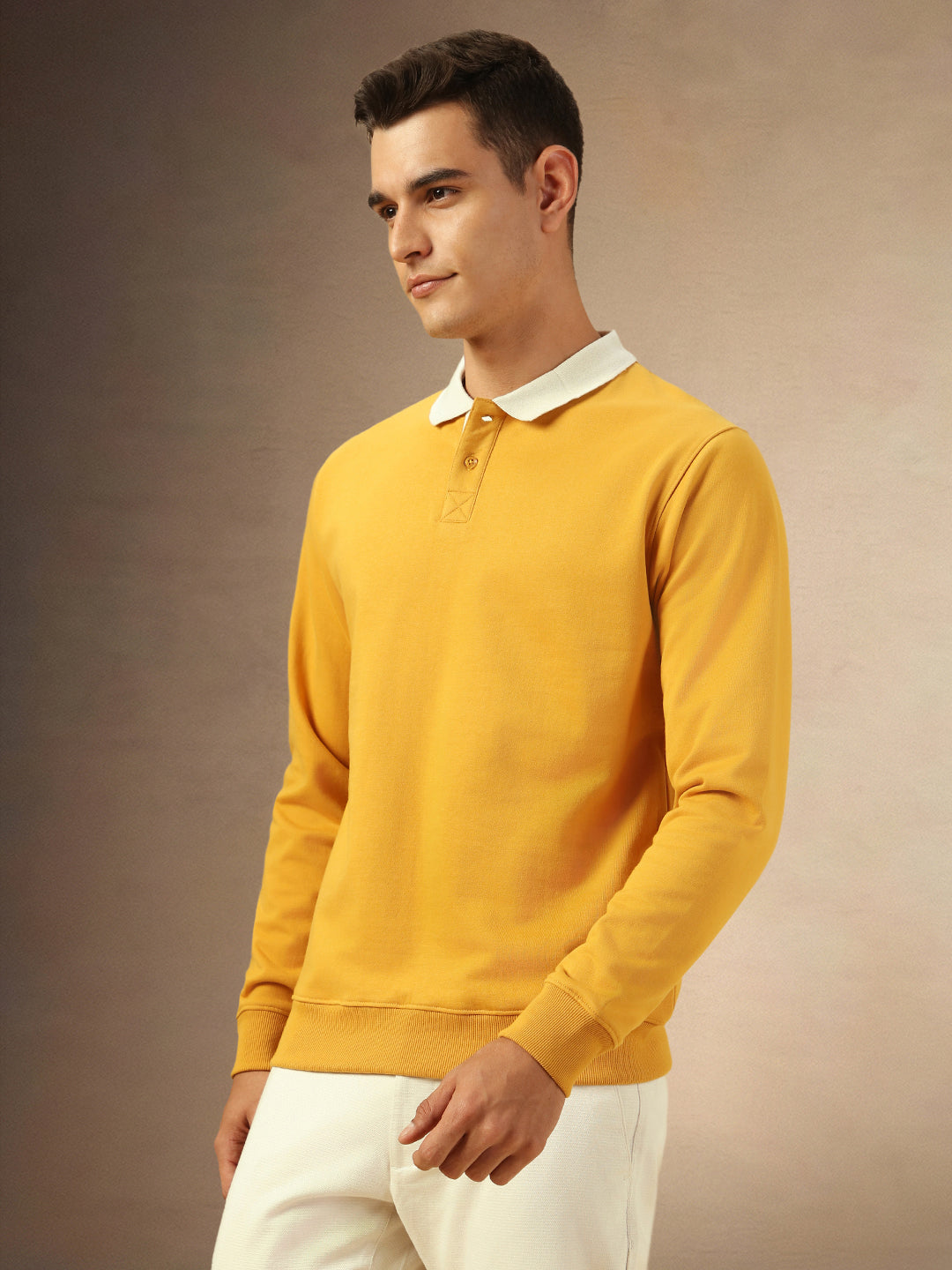 Men's Solid Mustard Polo collar Full Sleeves Sweatshirt