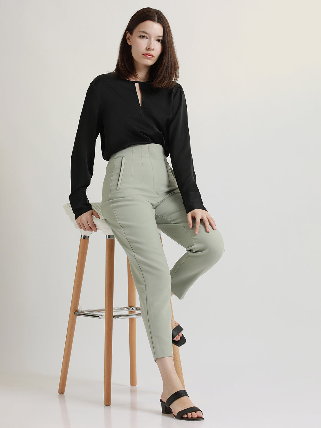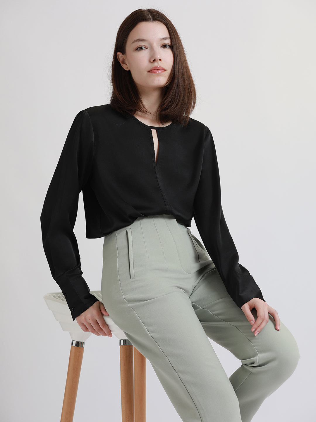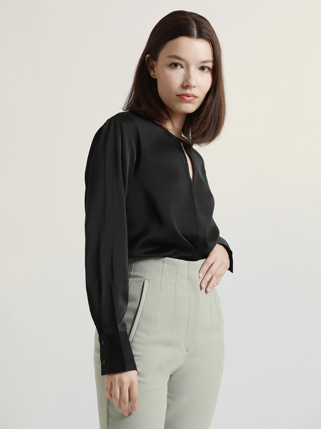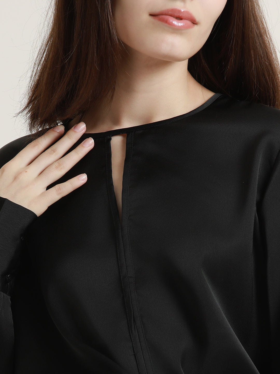 DL Woman Stylised V-neck Regular Fit Solid Black Top